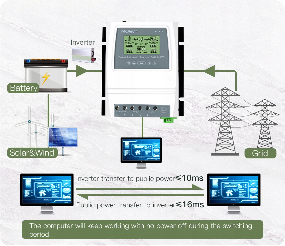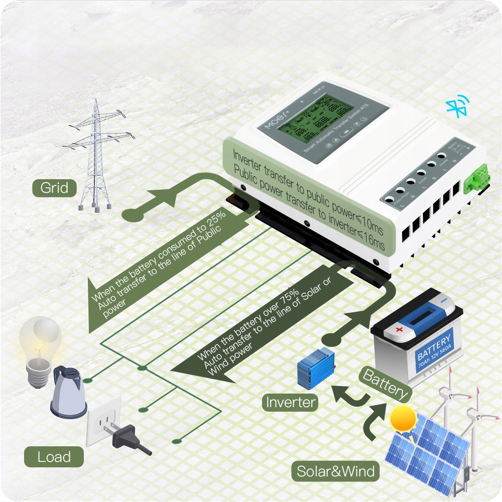 Интеллектуальный двойной контроллер питания Bluetooth MOES, 80 А, 8/16 кВт, автоматический резервный переключатель для автономной солнечной ветровой системы ATS
