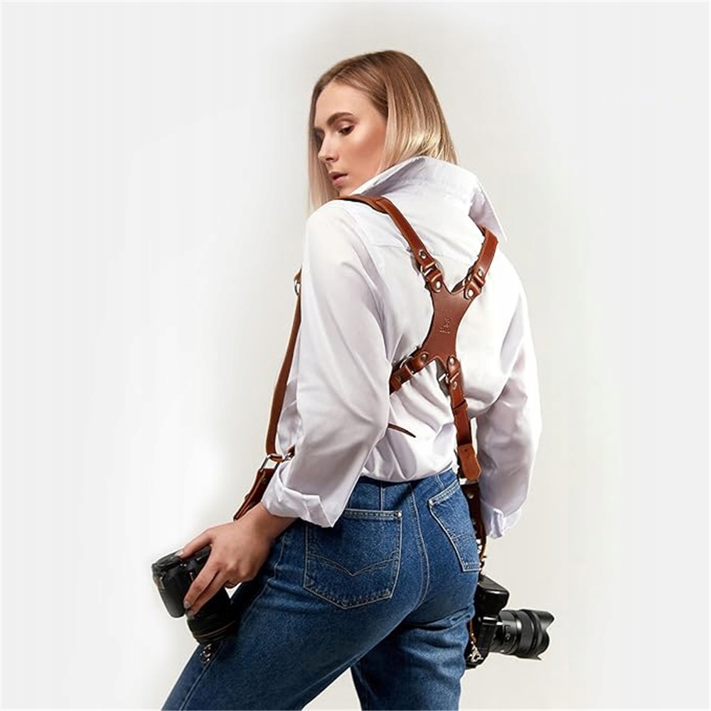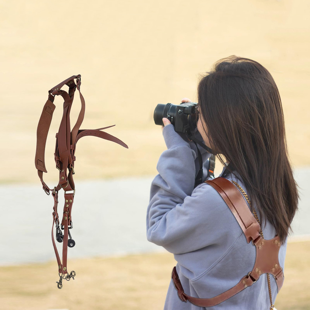 Оснащенная двойной защитной конструкцией с защитными винтами и металлическими застежками, она надежно блокирует интерфейс камеры, предотвращая случайное скольжение и обеспечивая двойную защиту ваших ценных камер. Даже носить с собой две зеркальные камеры остается безопасным и надежным.
