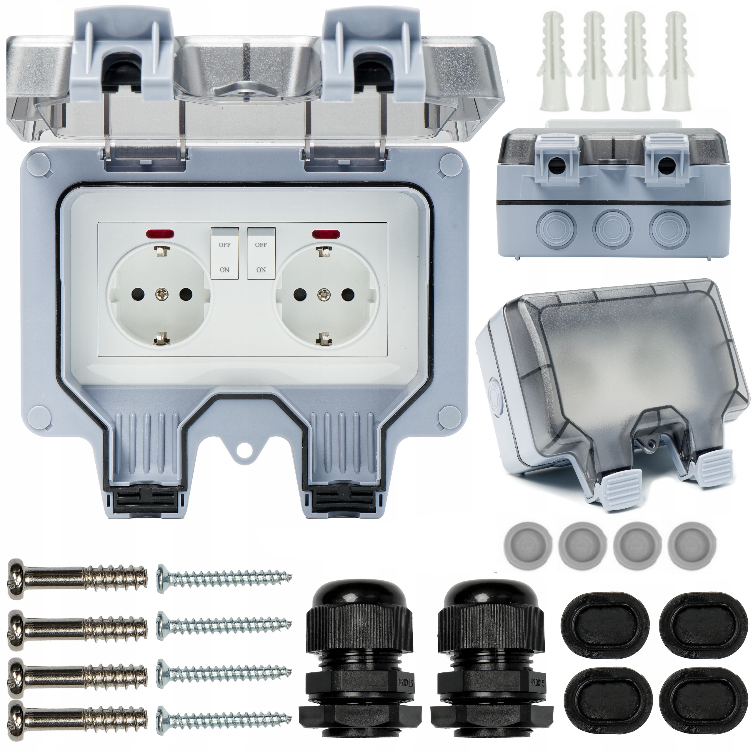Одиночная герметика 230 В, внешняя, IP66 -розетка, с прозрачной крышкой, коммутатором и диодом, с полным набором крепления. Идеально подходит для сада или склада. h1>