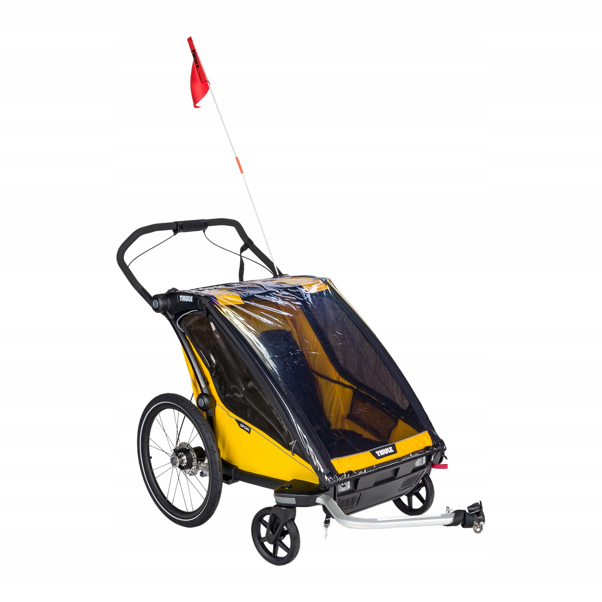В прицепе Thule Chariot Sport используется система Thule VersaWing, которая позволяет быстро и легко адаптировать конструкцию к различным видам деятельности. Регулируемая подвеска, полностью мягкие сиденья и кабина климат-контроля со съемными окнами и регулируемым солнцезащитным козырьком обеспечивают комфортное путешествие для детей и плавность езды для родителей, независимо от используемой комплектации.