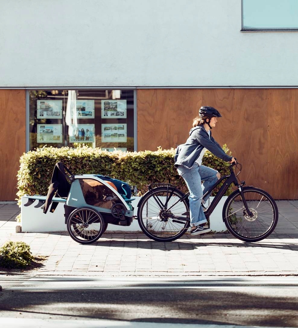 Это отличный прицеп и отличная коляска. . Без каких-либо компромиссов. Thule Courier оснащен двумя дополнительными колесами меньшего размера и комплектом велоприцепа Thule, что облегчает передвижение по городу.