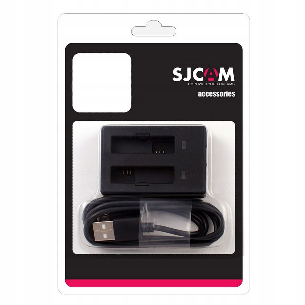 Двойное зарядное устройство USB для спортивных камер дает вам вдвое больше энергии, времени и возможностей. Благодаря этому мы можем заряжать две батареи SJCAM с помощью кабеля мини- или макро-USB, подключенного к ноутбуку, блоку питания или сетевому зарядному устройству с передатчиком. Зарядное устройство оснащено специальным микропроцессором, контролирующим текущее время и процесс зарядки аккумуляторов. Напряжение в розетках составляет 5В/2А, что делает устройство пригодным для большинства сетевых зарядных устройств для смартфонов. Кроме того, в зарядном устройстве имеются диоды, указывающие уровень заряда. USB-кабель в комплекте.