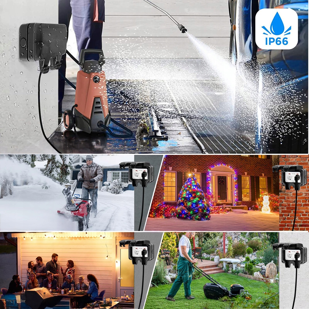 Внешнее гнездо, установленное на поверхности, имеет управляющие переключатели и управляющая лампа, которая может четко сказать, включается ли гнездо и используется плавно, и которая может быть отключена в любое время, когда одна позиция не используется.