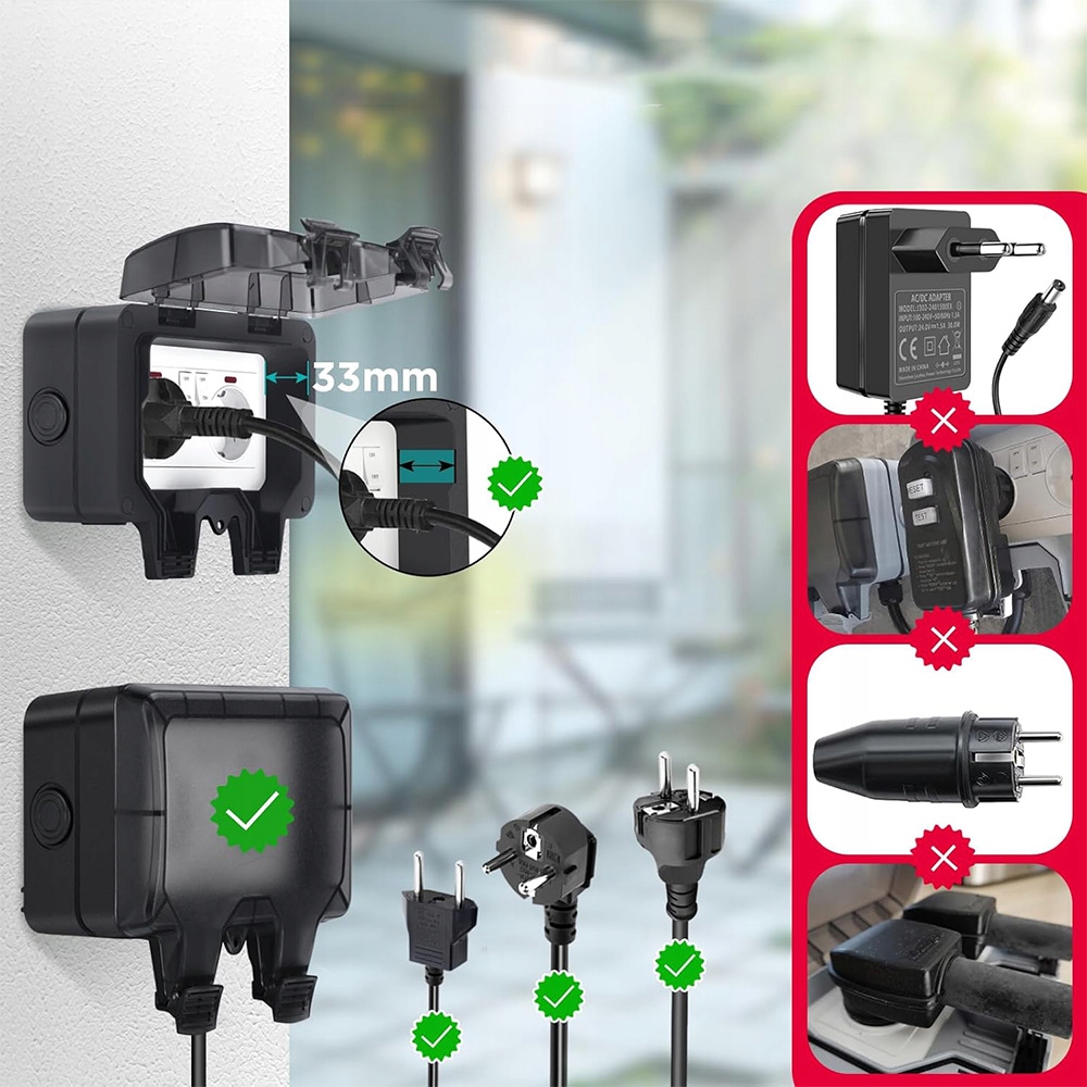 Этот недавно улучшенный внешний розетка отличается от старого гнезда. Мы увеличили высоту улучшенной модели, улучшенная и повышенная конструкция значительно улучшает интерьер и предотвращает изгиб кабеля для подключения.
