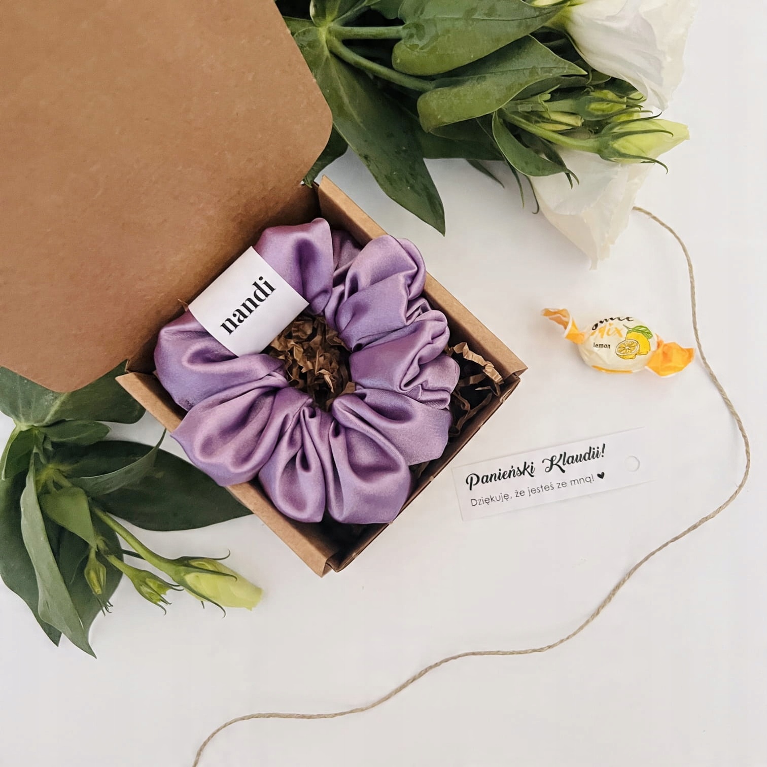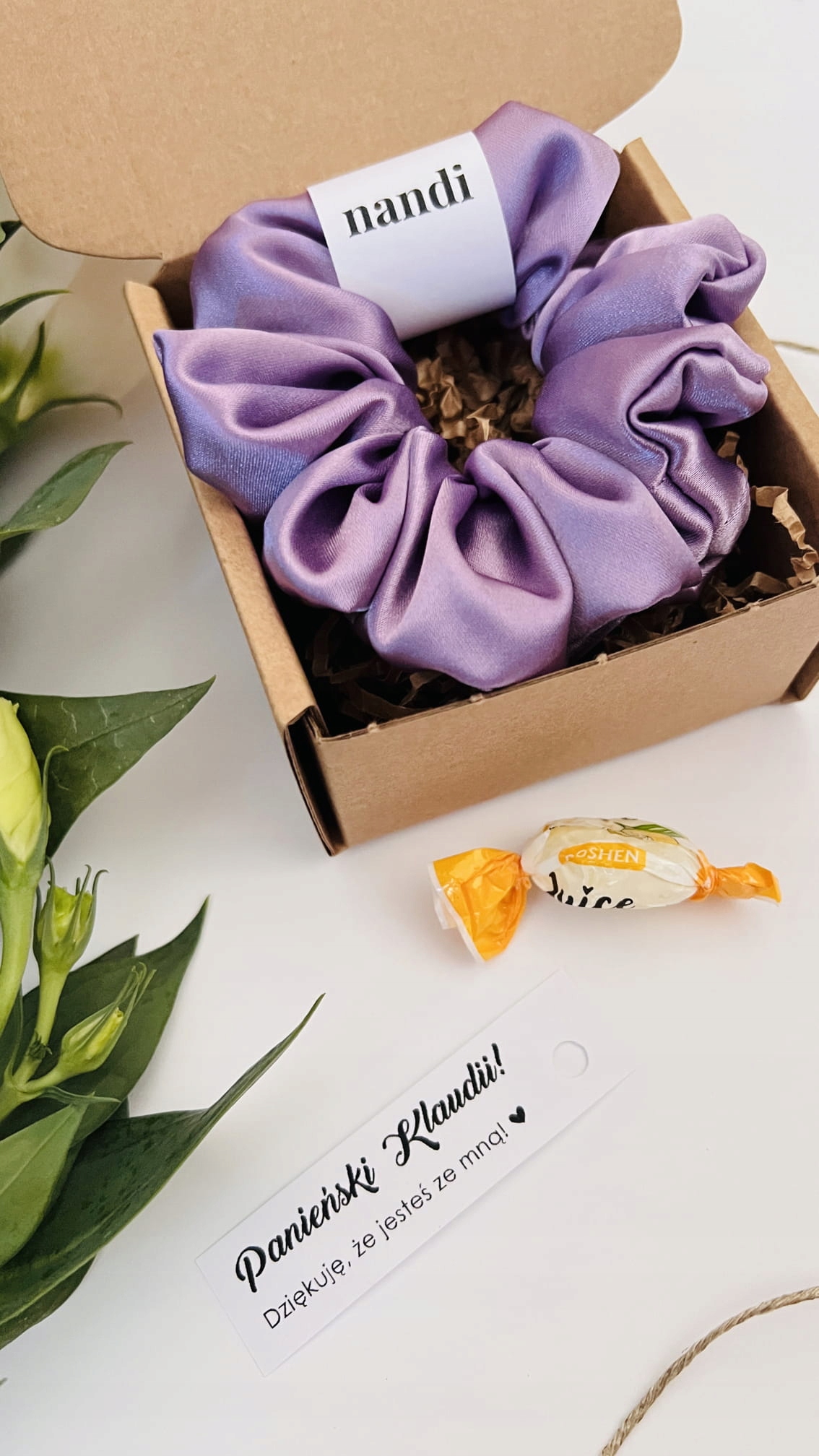 В состав одного изделия входят: резинка для волос выбранного цвета, картонная коробка с веревочкой, визитная карточка, конфета и посвящение. Каждый ластик упакован отдельно и поставляется с вамиготовым к вручению.