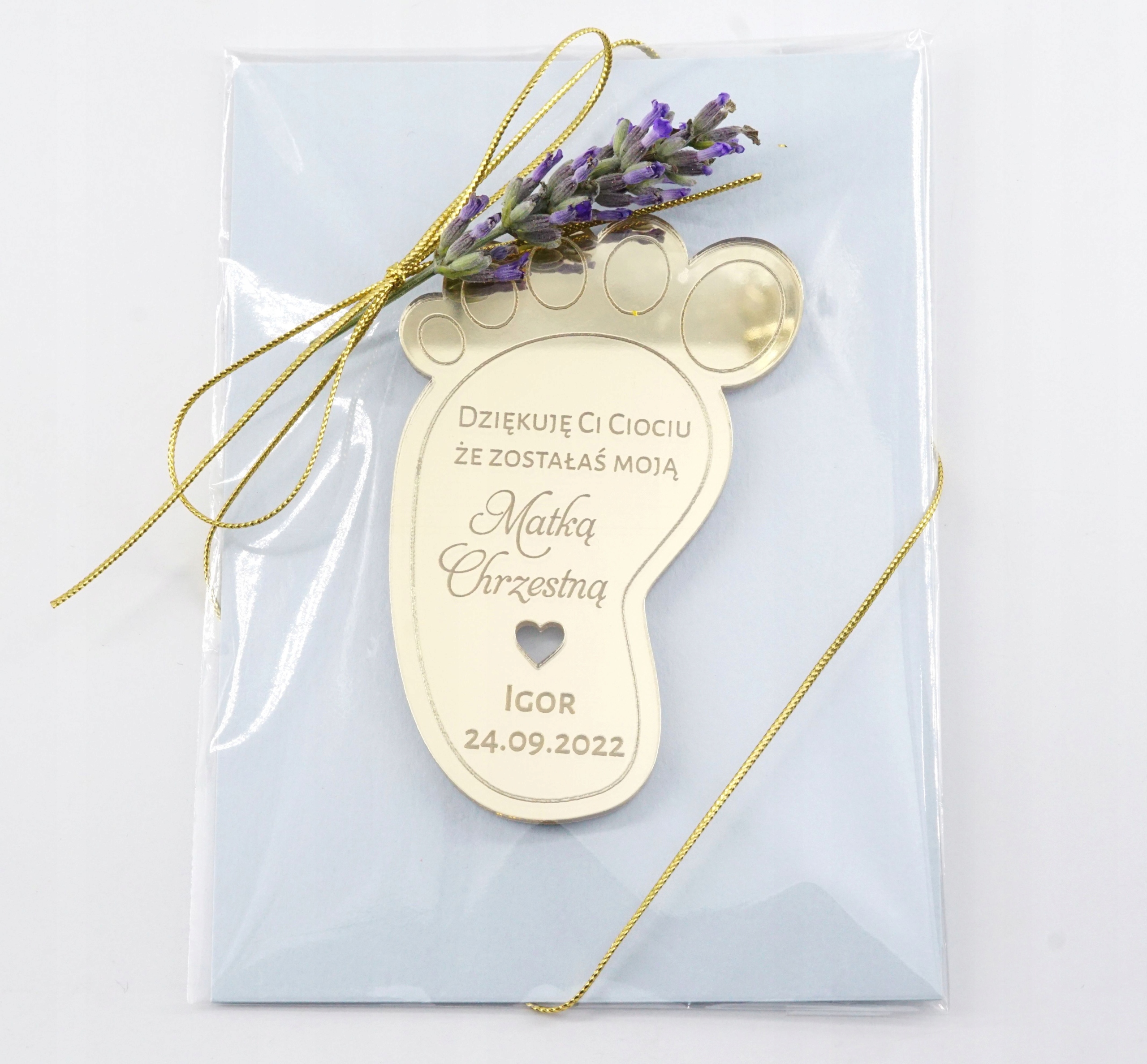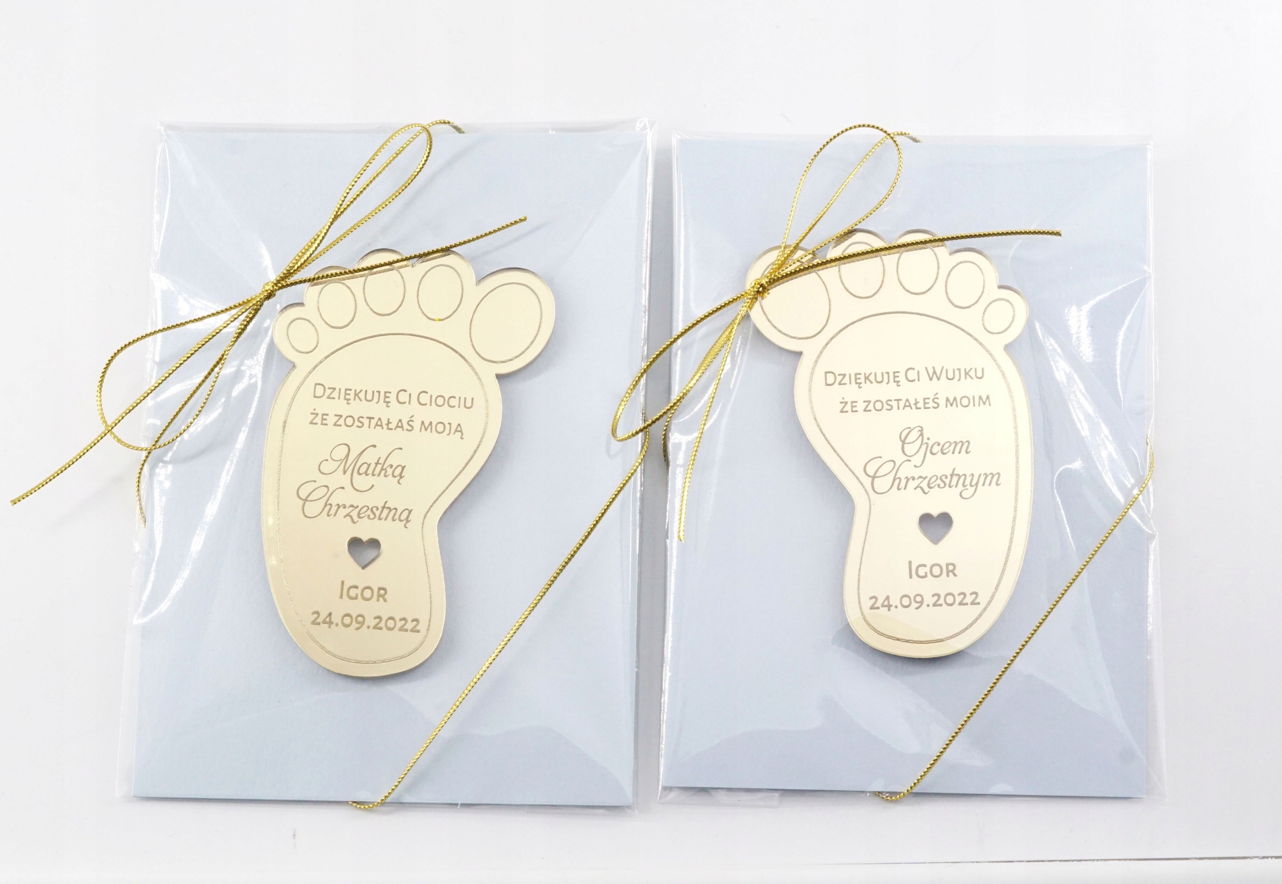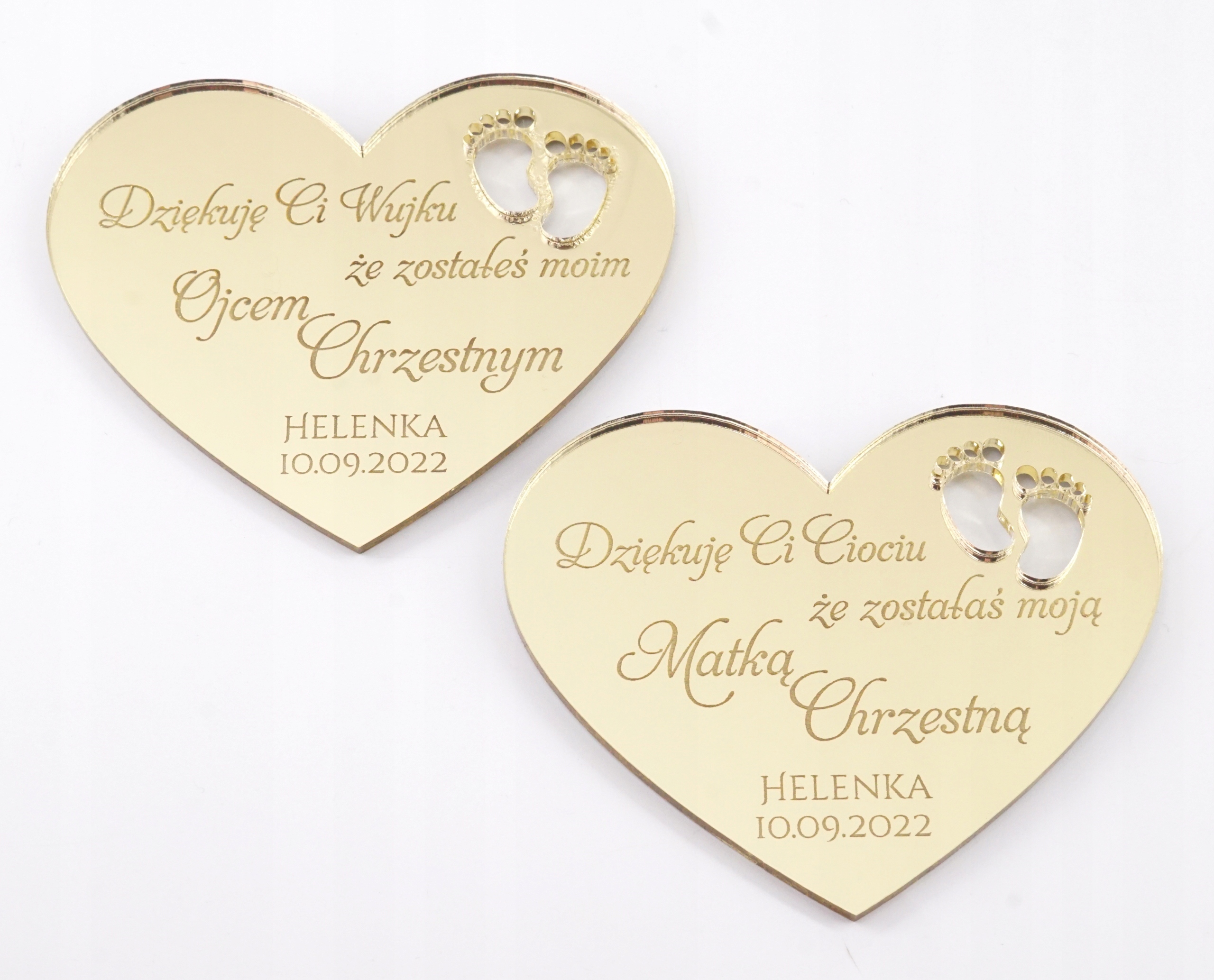 Именные магниты из золотого акрила «зеркало» в благодарность крестным.