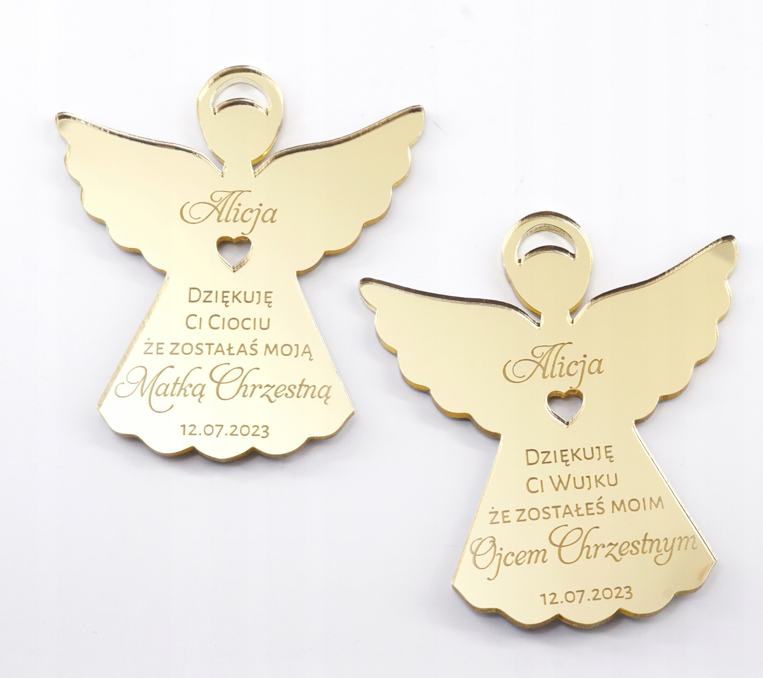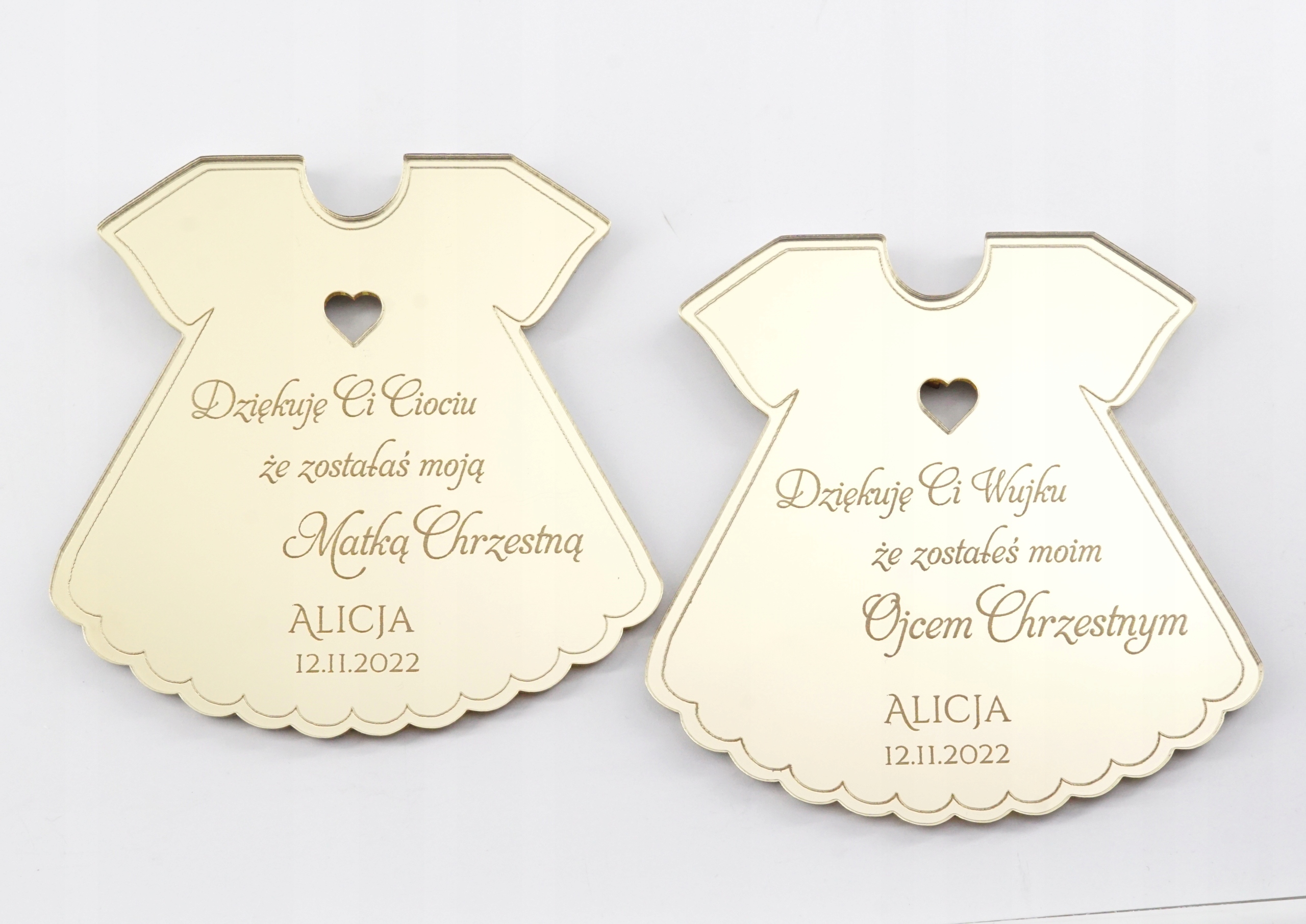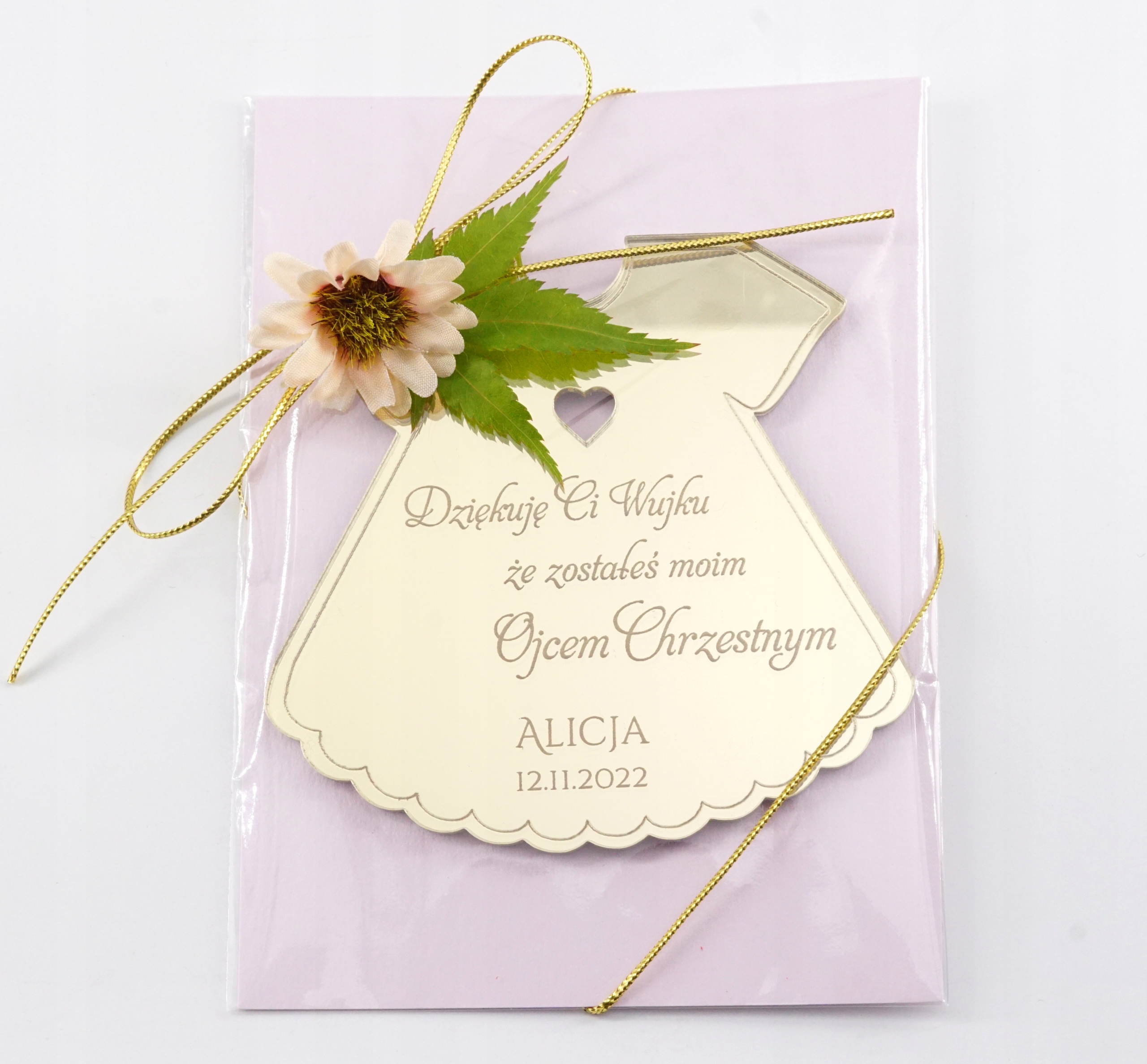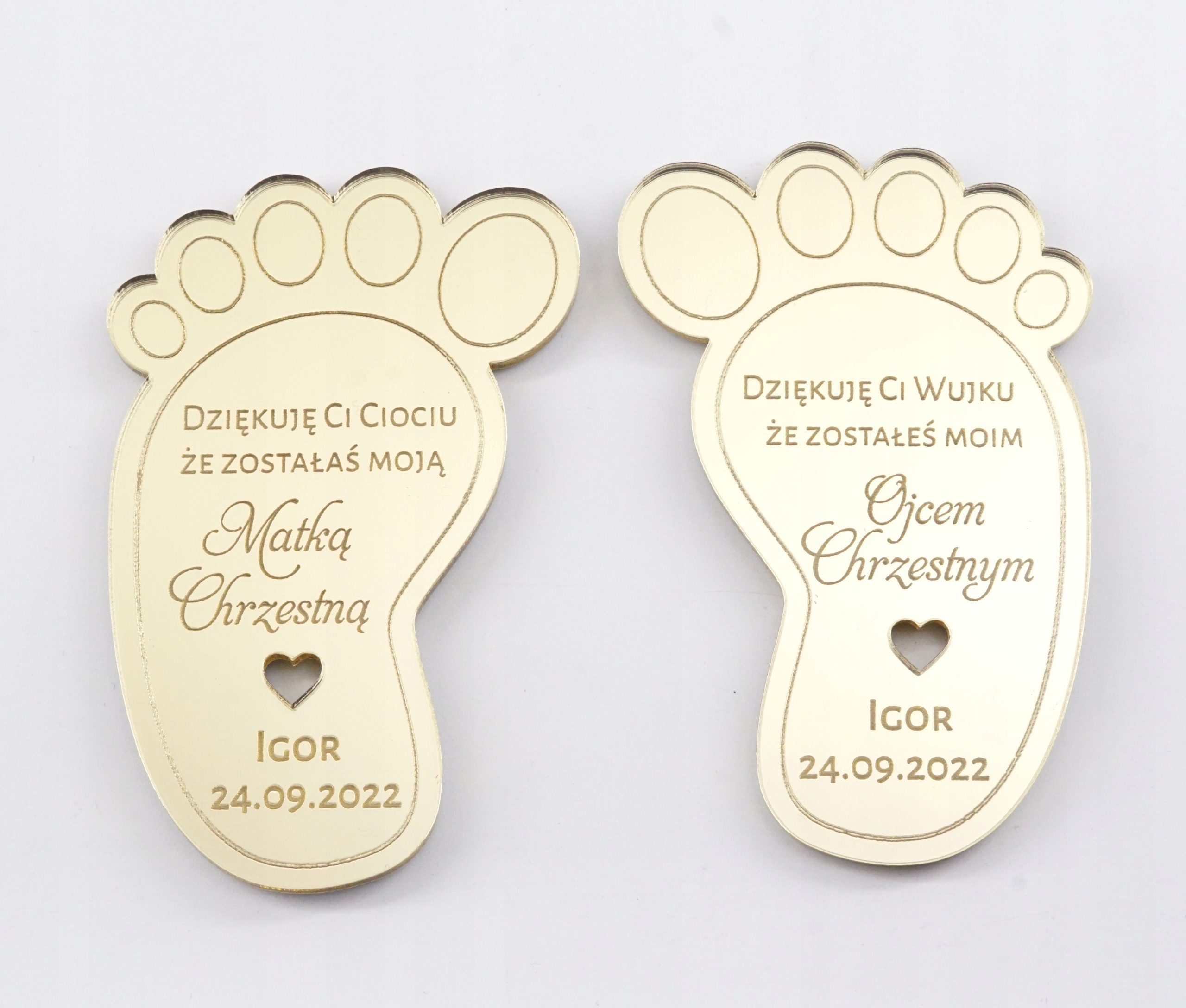 Именные магниты из золотого акрила «зеркало» в благодарность крестным.