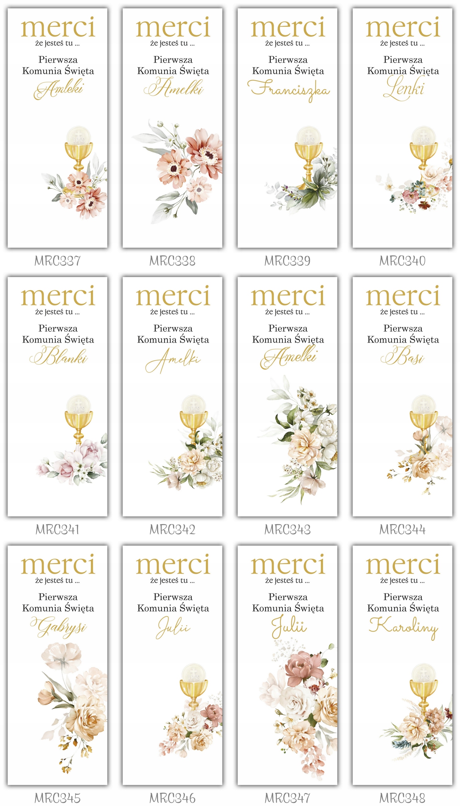 Подяка MERCI гостям за причастя 5 шт