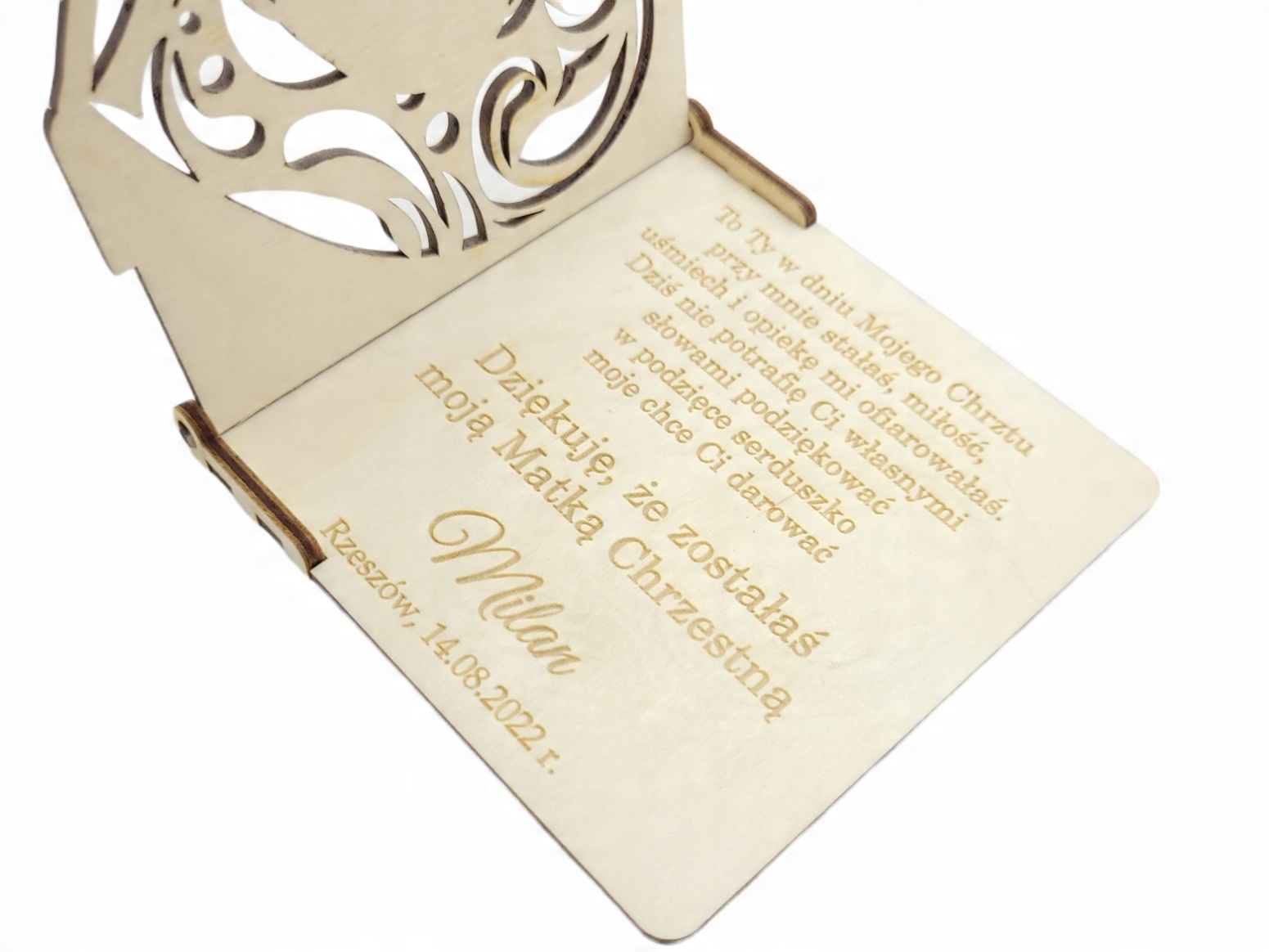 Благодарственное письмо для крестной с гравировкой из фанеры 3 мм – это подарок, посвященный человеку, играющему особую роль в жизни ребенка, а именно крестной матери. Изделие представляет собой выгравированный текст на деревянной фанере толщиной 3 мм, что придает ему элегантный и естественный вид.
