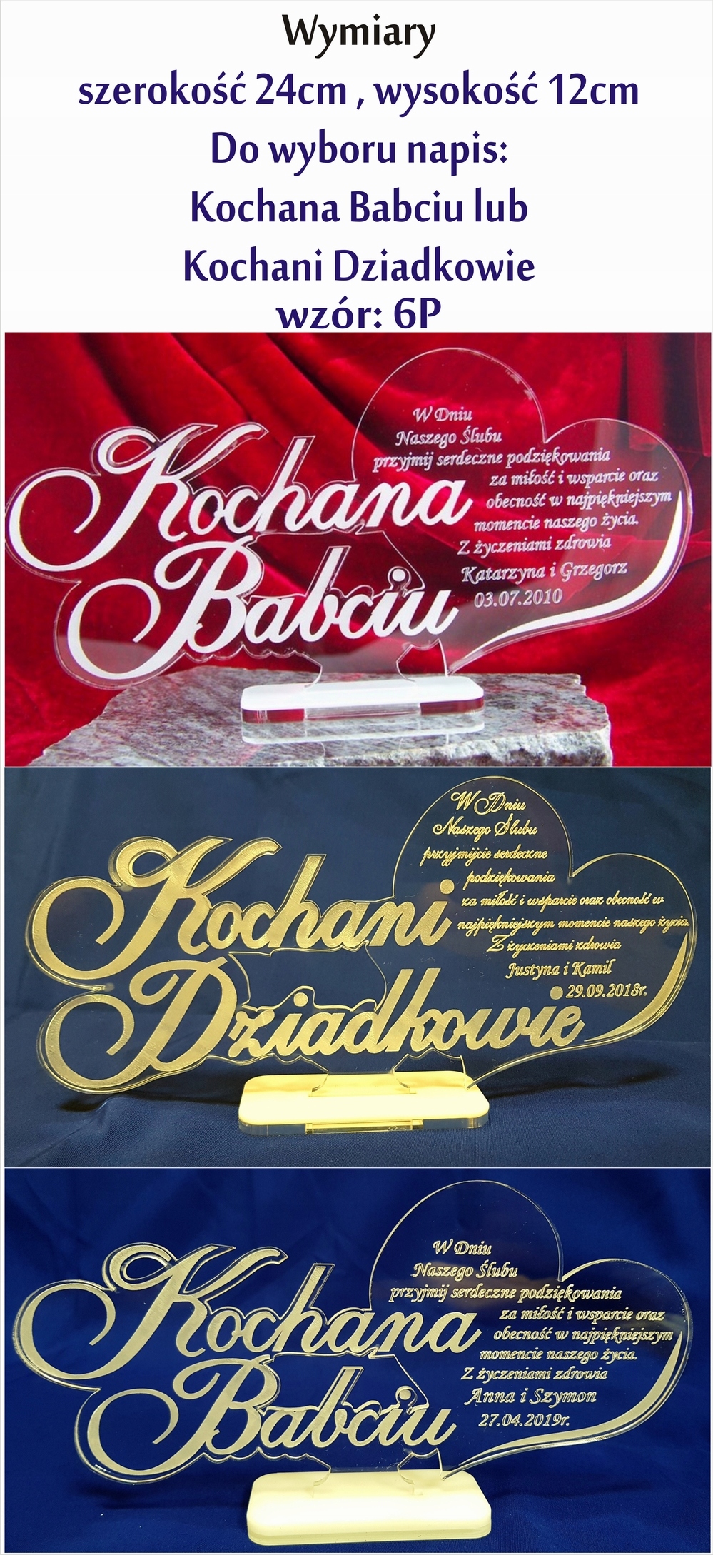 PODZIĘKOWANIA DLA DZIADKÓW BABCI GRAWEROWANE ŚLUB