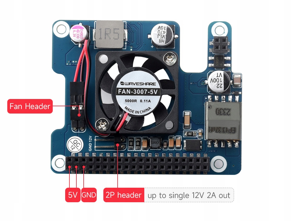 - Выходная мощность: разъем GPIO: 5 В, 4,5 А (МАКС.), разъем 2P: 12 В, 2 А (МАКС.) < /li>