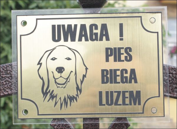 Погана табличка для собаки, вигравірувана золотом + оргскло HIT