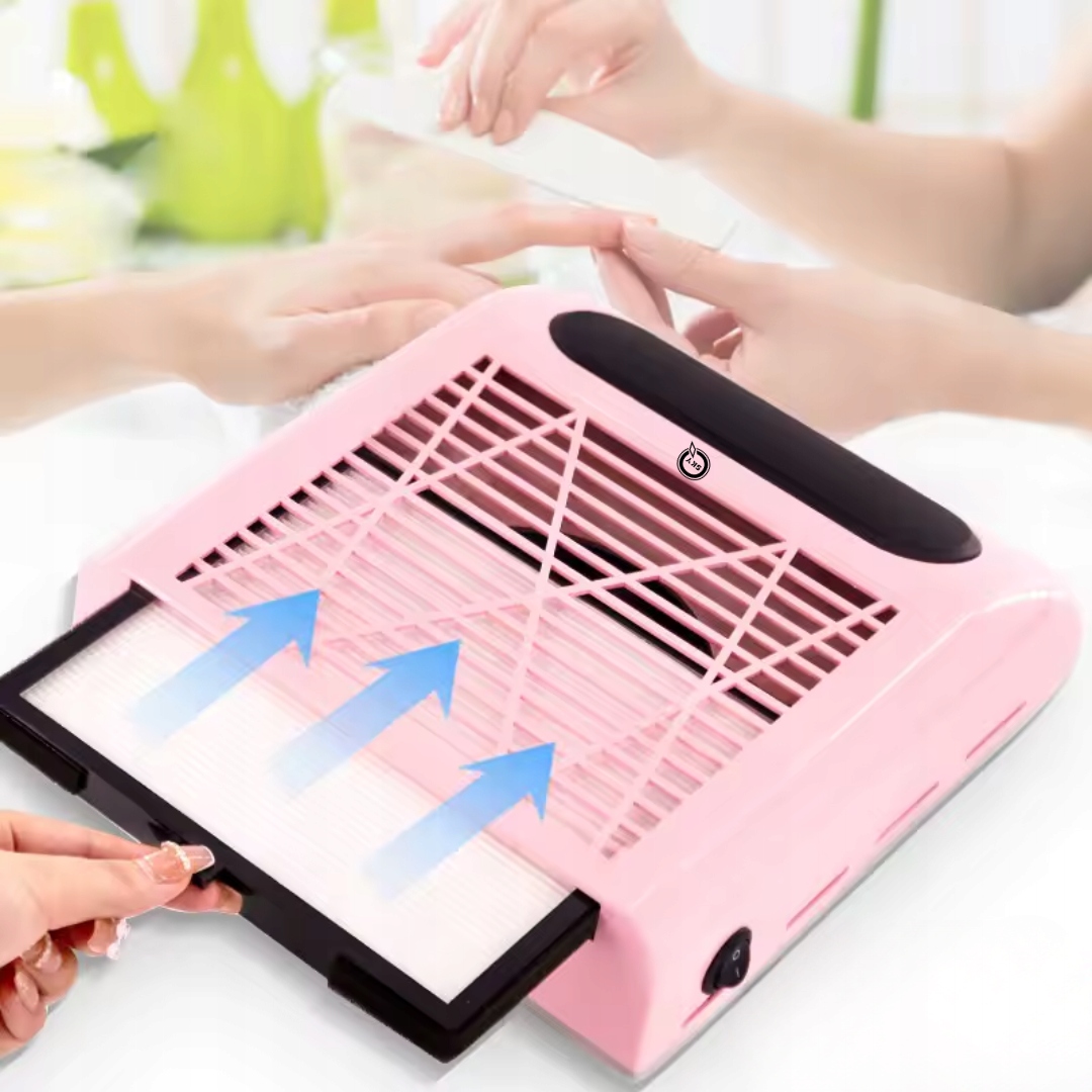 Профессиональный пылепоглотитель мощностью 80 Вт для маникюра и педикюра, который всасывает до 98% частиц, образующихся во время подпиливания, полировки и фрезерования ногтей.