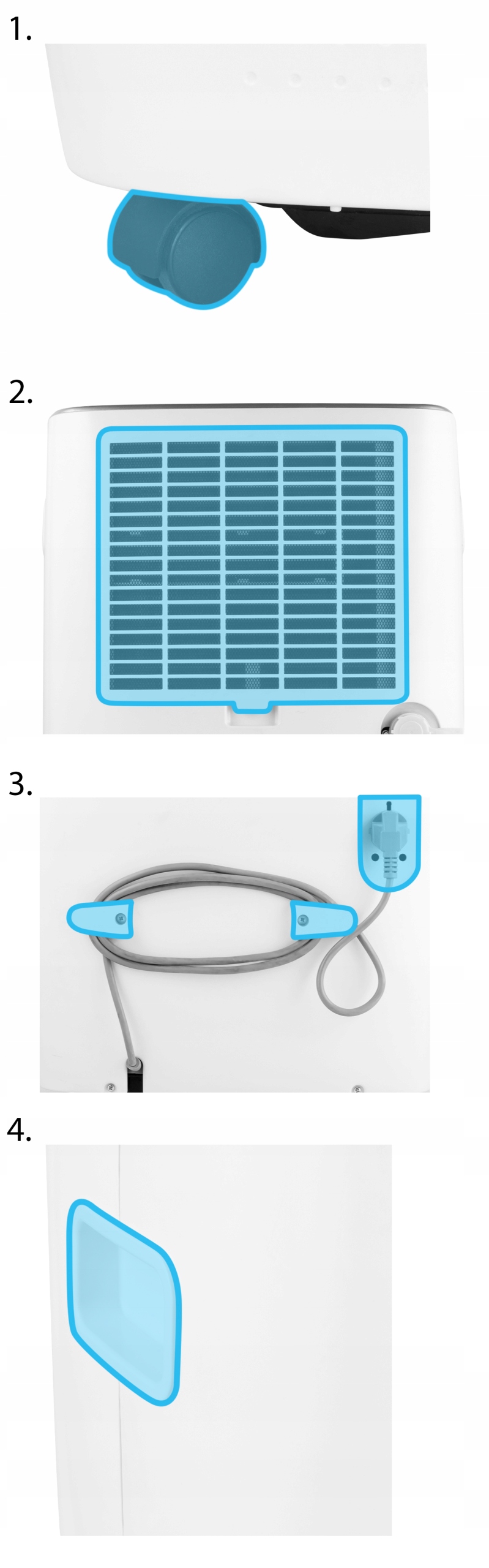 2️⃣ Защитная сетка - защищает внутреннюю часть осушителя, закрывая воздухозаборное отверстие, что эффективно предотвращает прямой доступ к движущимся компонентам устройства.