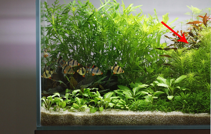 растение для заднего плана резервуара и в качестве основной точки расположения в середине аквариума между видами с более темными круглыми или ланцентными листьями.