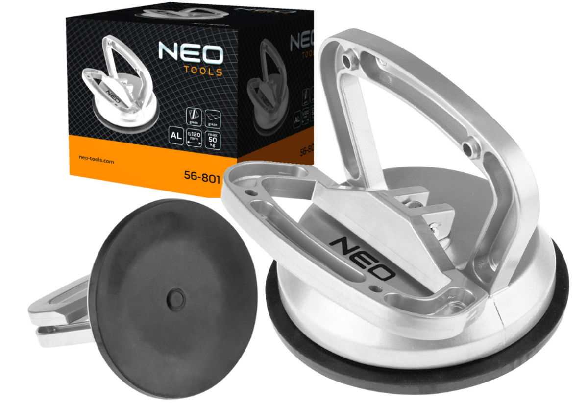 всасывающая чашка оконна, одиночная Neo (ссылка 56-801) используется для транспортировки и монтажа стекла, а также металлических или пластиковых пластин. Корпус из алюминия. Резиновая чашка 120 мм обеспечивает высокий уровень комфорта и безопасности при использовании максимальной грузоподъемности 50 кг. Бренд NEO соответствует ожиданиям профессионалов