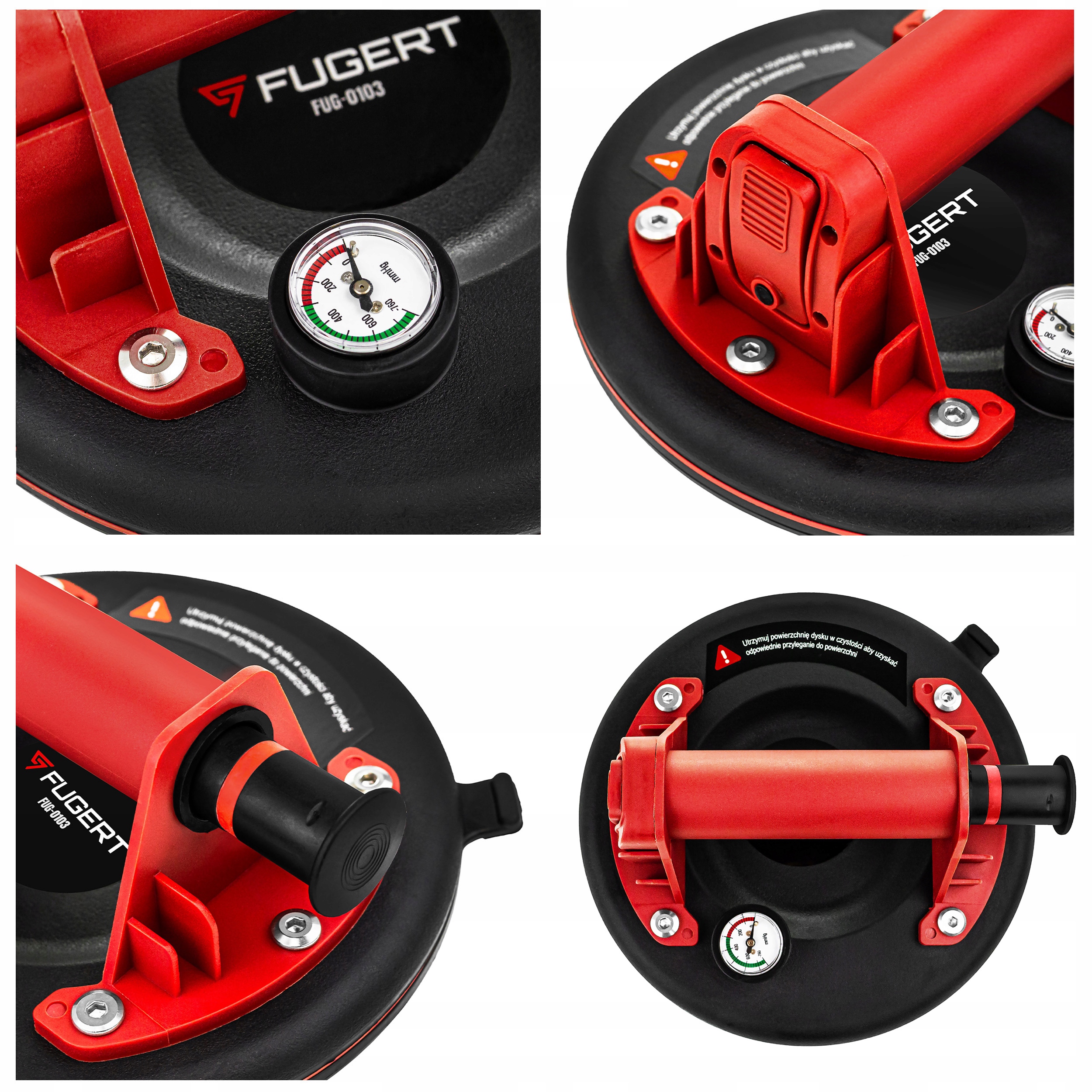 Вакуумная присоска имеет эргономичный дизайн - манометр таких размеров и расположен так, что не мешает во время работы с инструментом.