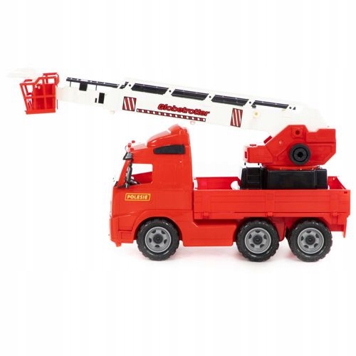 Огненная бригада Volvo представляет собой большой автомобиль, оборудованный широкими колесами, соединенными металлическими осями. Их структура не гладкая, что облегчает управление неровными поверхностями. Полуотборщик имеет лестницу, которая вращается вокруг своей оси, которая может быть поднята и перемещена. В конце есть корзина, особенно для статуэтки маленького героя. Стороны автомобиля также открыты. Ребенок может подражать работе настоящей пожарной команды. Водительская каюта застеклена. Толстый, прозрачный пластик использовался для этой цели.
