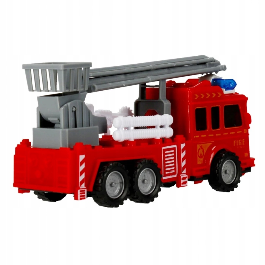 Маленькая пожарная машина имеет функцию отвода назад, поэтому, толкнув автомобиль вперед, она продолжает движение самостоятельно.