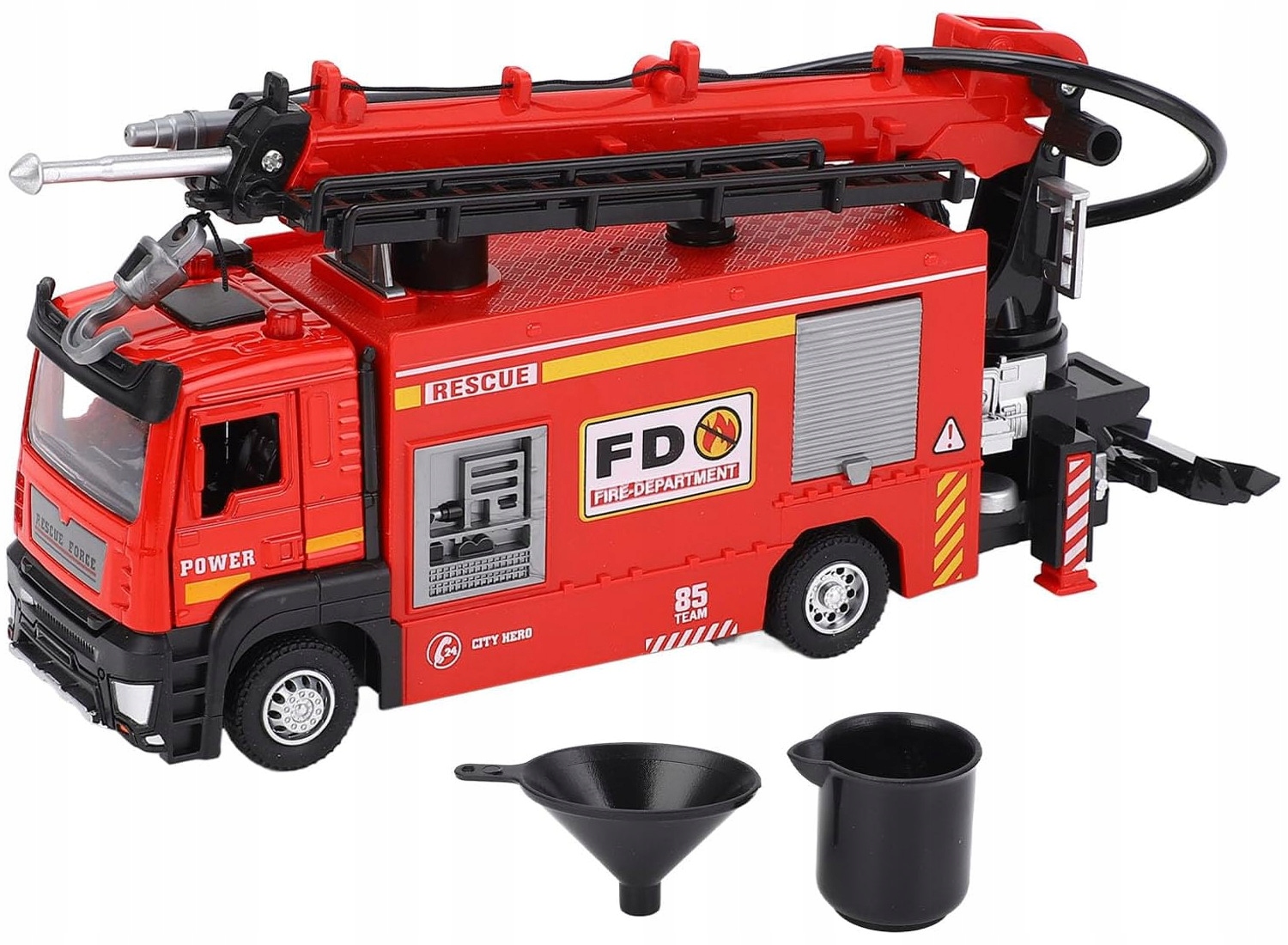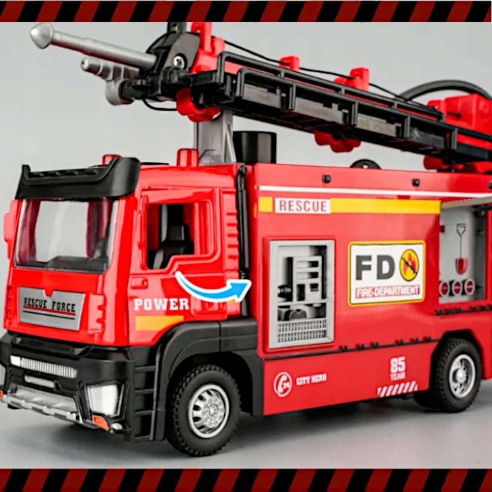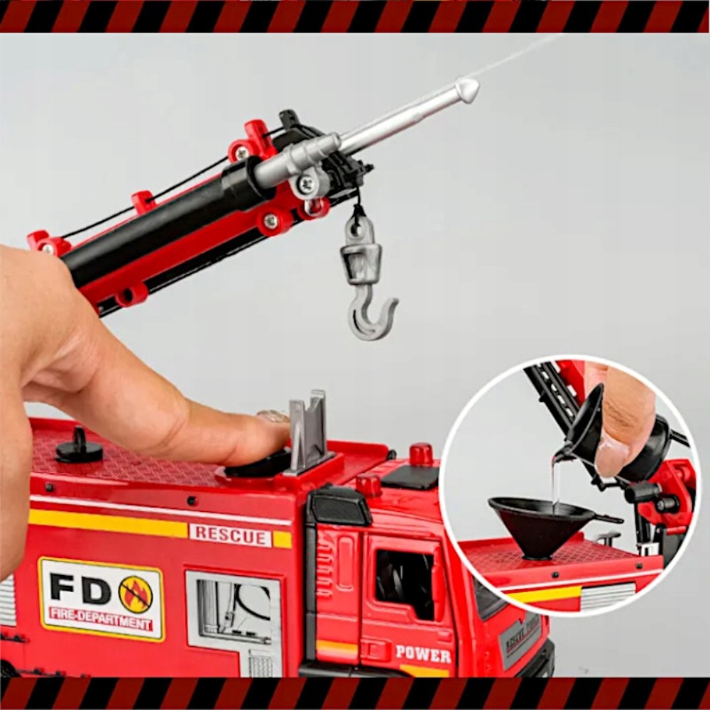 Модель разработана с исключительным вниманием к деталям - металлическая кабина, точные элементы конструкции и воспроизведение настоящей пожарной машины делают игрушку похожей на миниатюру полноразмерной пожарной машины.