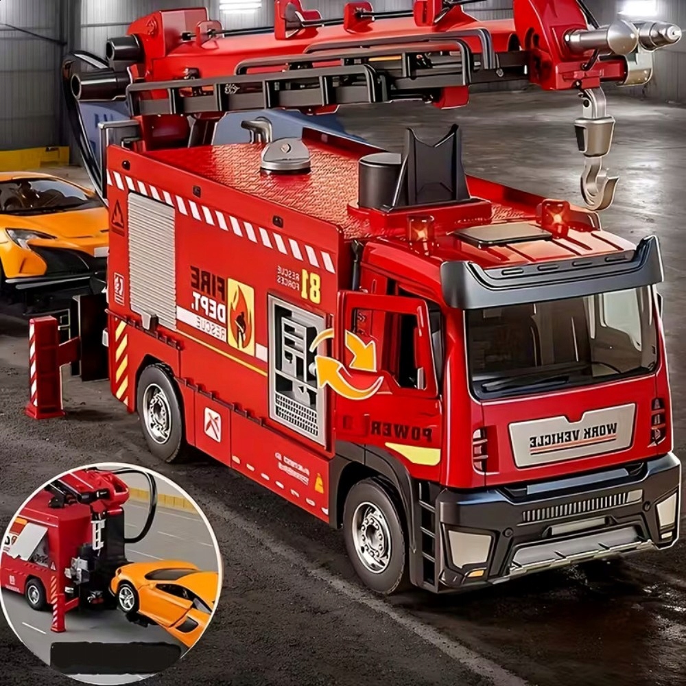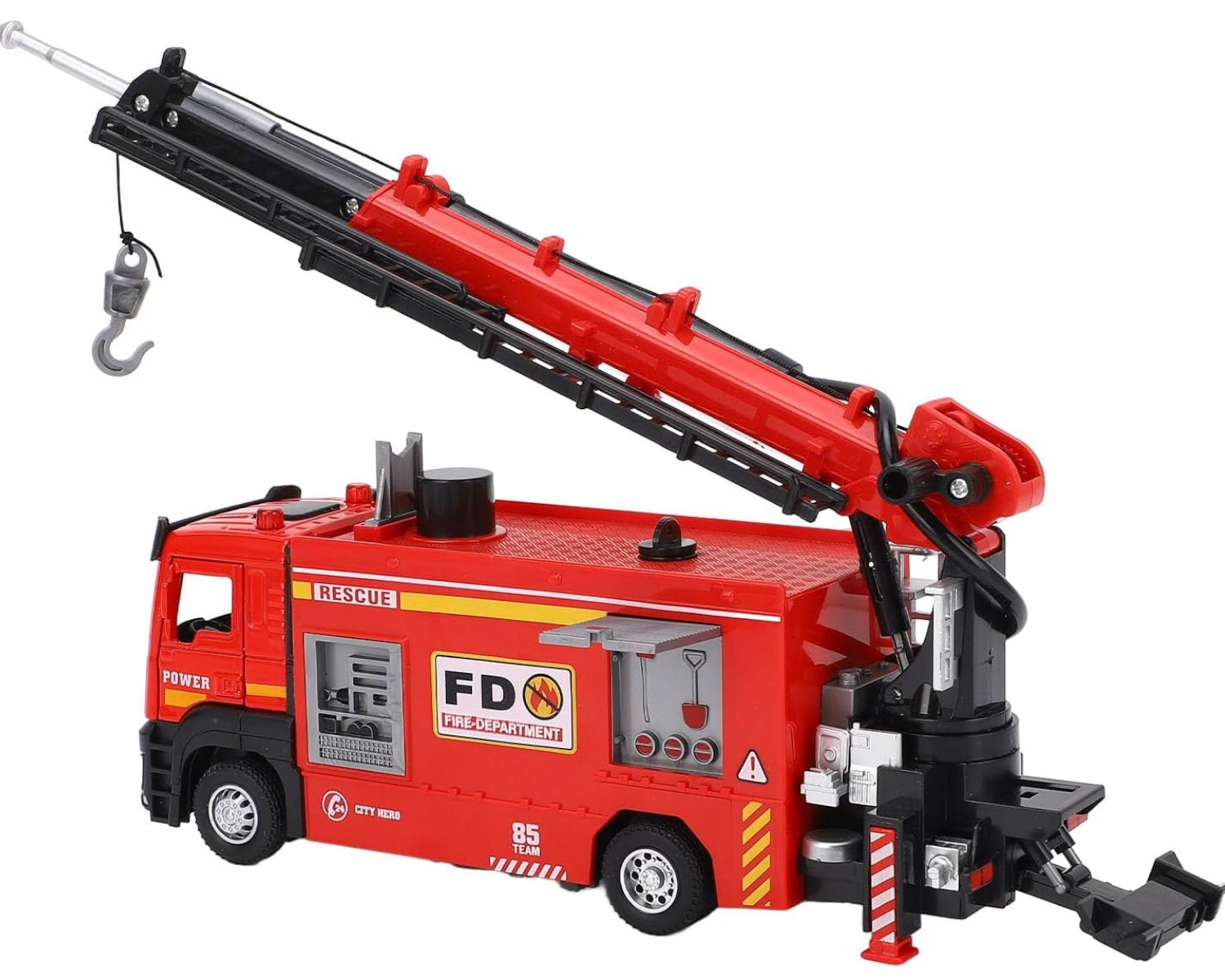 Реалистичная пожарная машина с приводом, световыми и звуковыми эффектами, эвакуатором и водяным насосом – идеальная игрушка для каждого маленького любителя спасательных операций и коллекционеров. Дети любят играть роль отважных пожарных, и эта модель позволит им выполнить увлекательные миссии - тушить пожары, спасать и помогать.