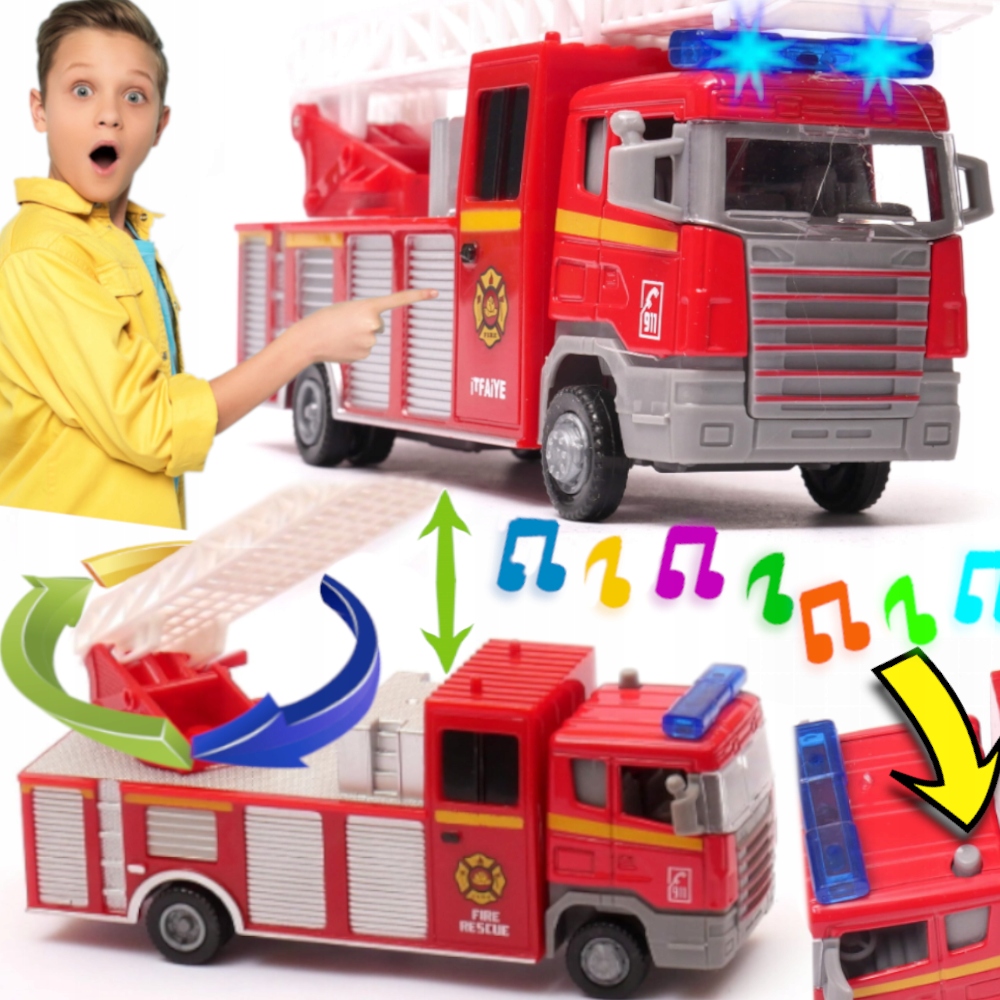 ❇️ МЕТАЛЛИЧЕСКАЯ ПОЖАРНАЯ МАШИНА СО СВЕТОМ, ЗВУКОМ И ПОДВИЖНОЙ КОРЗИНОЙ