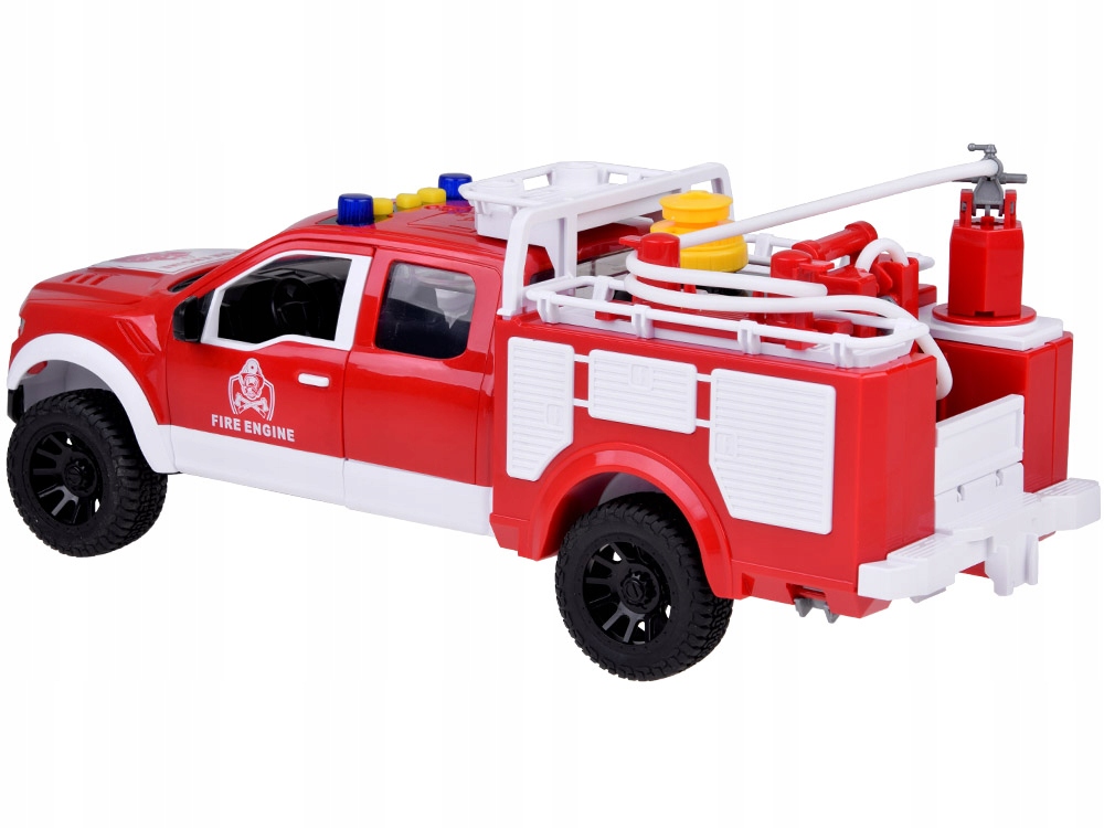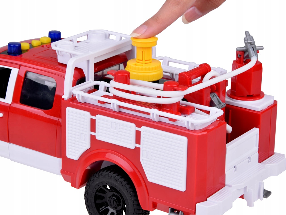 Пожарная машина с вращающимся шлангом — впечатляющая спасательная машина, которая привлечет внимание каждого ребенка. На его крыше расположен длинный шланг, который можно поворачивать в разные стороны, чтобы направить струю воды именно туда, куда нужно. Благодаря специальному насосу через шланг можно перекачивать настоящую воду, что позволяет получить настоящее удовольствие от тушения пожара. Автомобиль красного цвета, с мигалками и сиренами, готовый в любой момент действовать по спасению людей и животных!