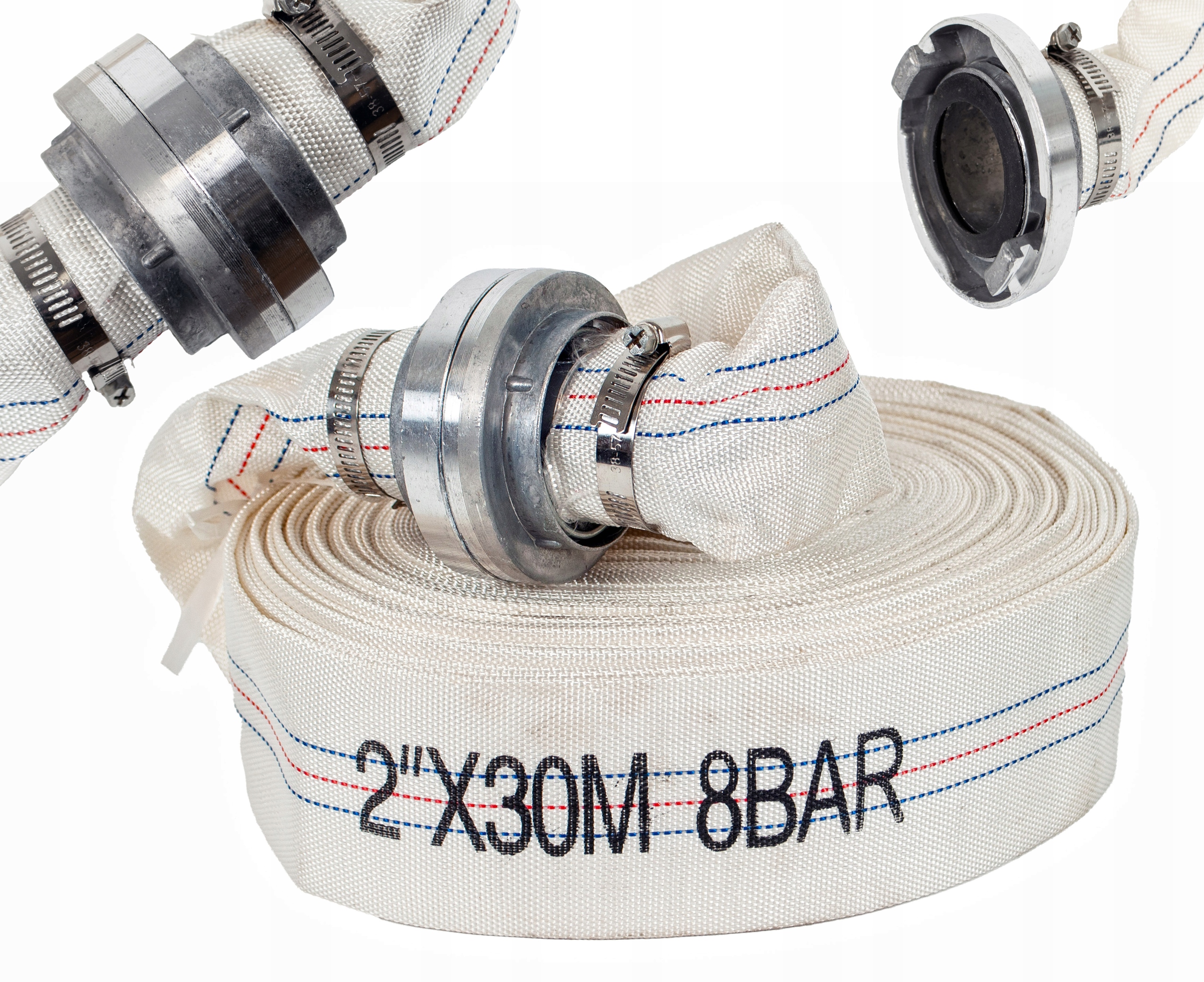 Рукав пожарный профессиональный, 30 метров длиной, изготовлен из прочного пластика с текстильной оплеткой. Оснащен алюминиевыми быстроразъемными соединениями - быстрое и безопасное соединение с насосами, гидрантами или другими шлангами.