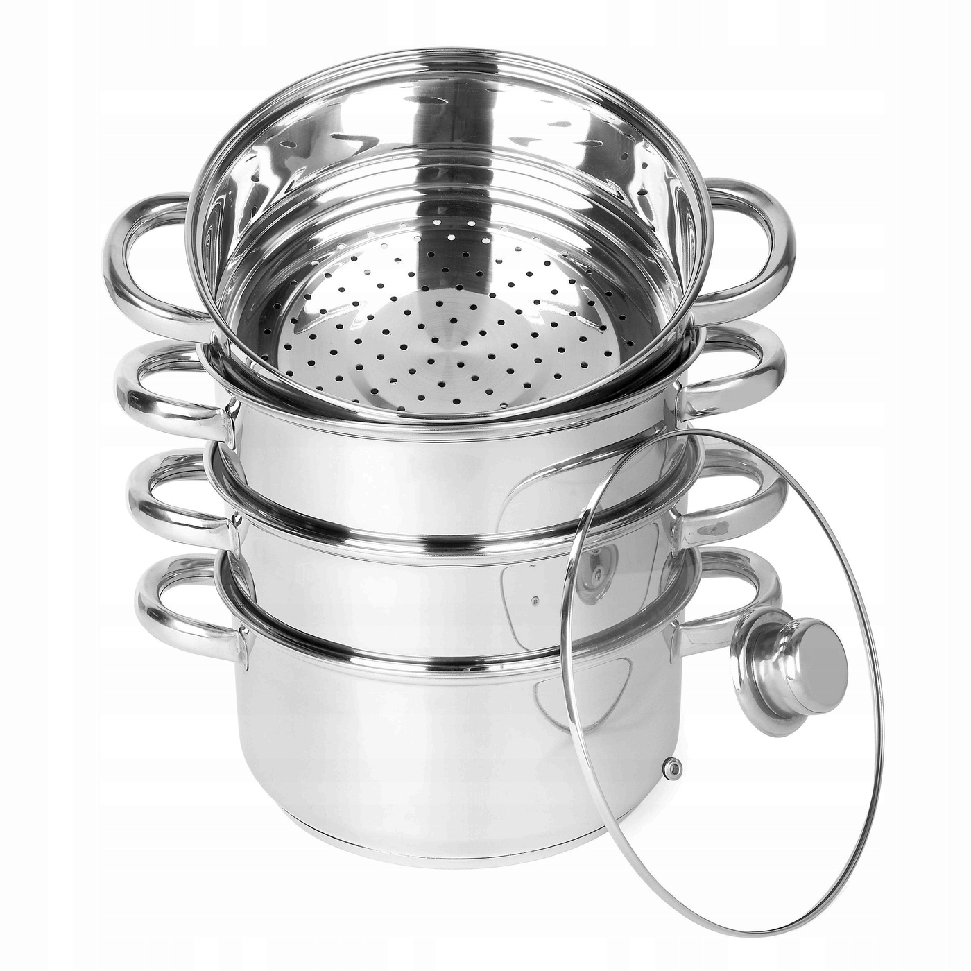 Pojemny GARNEK DO GOTOWANIA NA PARZE 3 SITKA indukcja PAROWAR inox POKRYWKA