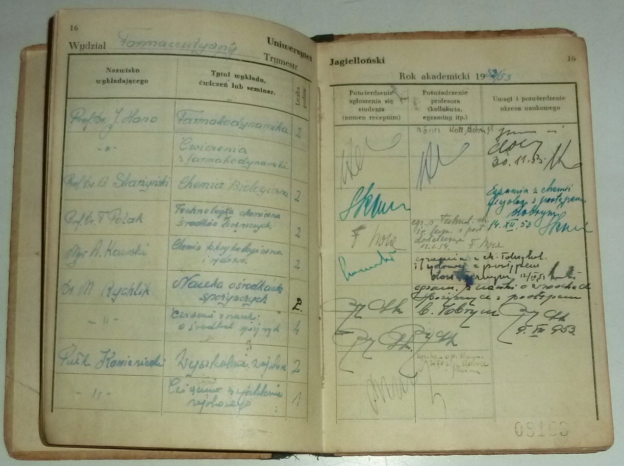 ИНДЕКС Буклет ID-карта ЯГЕЛЛОНСКОГО УНИВЕРСИТЕТА ФАРМАЦИЙНЫЙ ФАКУЛЬТЕТ 1949 г.