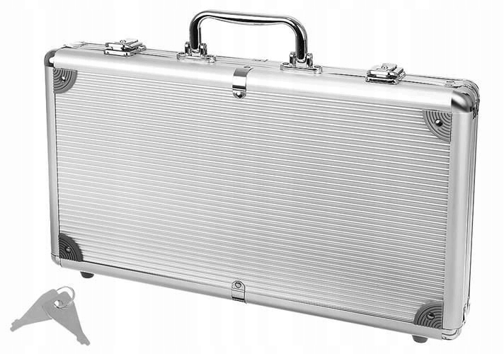 - АЛЮМИНИЕВЫЙ ЧЕМОДАН Покерный набор упакован в очень прочный чемодан из алюминия. Имеет эргономичную ручку, позволяющую удобно переносить и транспортировать.