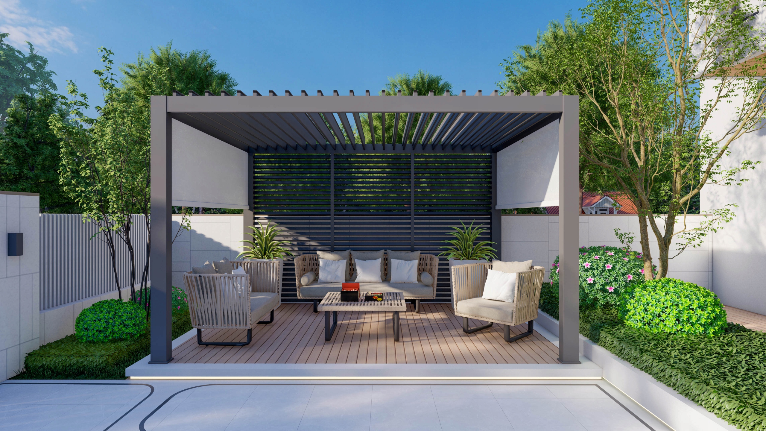 Пергола может быть оборудована следующими элементами: