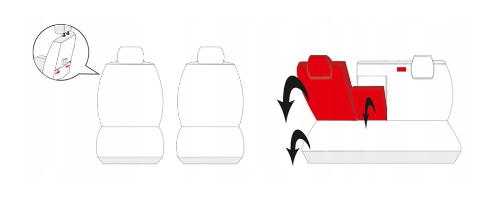 В зависимости от модели автомобиля в комплект входят чехлы на такие элементы, как передний или задний подлокотник, молнии, позволяющие использовать столики, и карманы в спинках передних сидений, чехлы на складные подголовники, боковые чехлы на колесные арки ( столбцы).