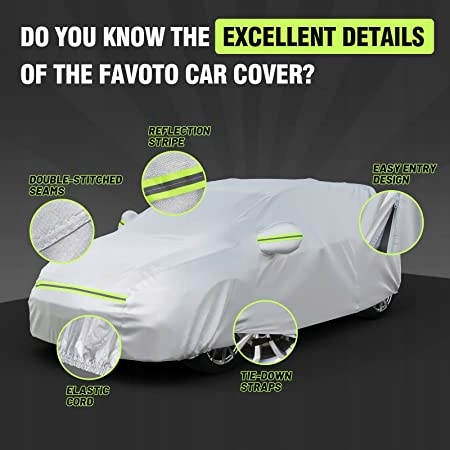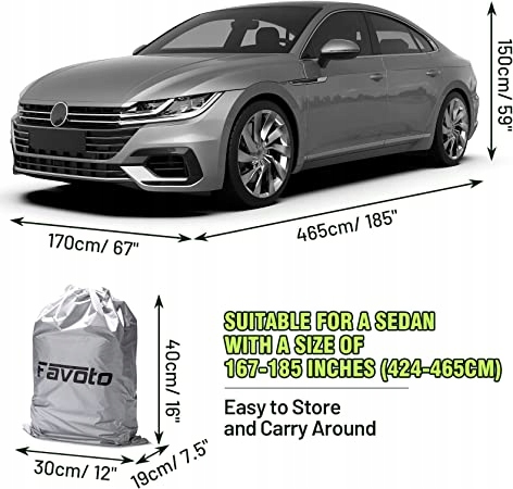 Автомобильный чехол Favoto на весь год, подходит для всех лимузинов длиной 435 - 470 см. Размеры: 4,65 х 1,7 х 1,5 м. В комплект поставки входит сумка для хранения. Чехол легко складывается и помещается в багажник.