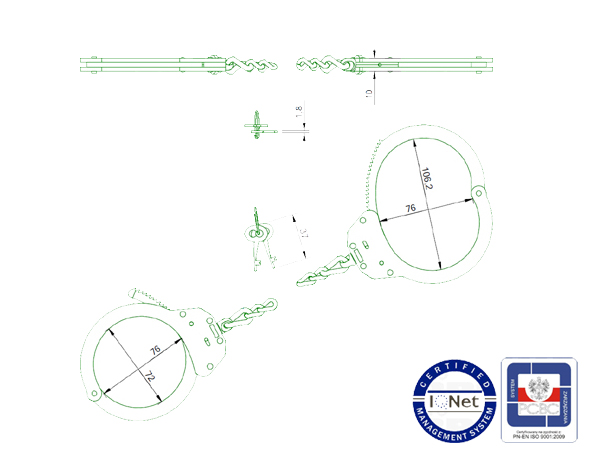 На этапе проектирования наручников были проведены консультации с Главным управлением полиции, что позволило создать продукт, соответствующий самым высоким стандартам, нормам и рекомендациям Главного управления полиции. Лодзинский технологический университет провел специализированные испытания на прочность наручников, что доказывает исключительную долговечность изделия.