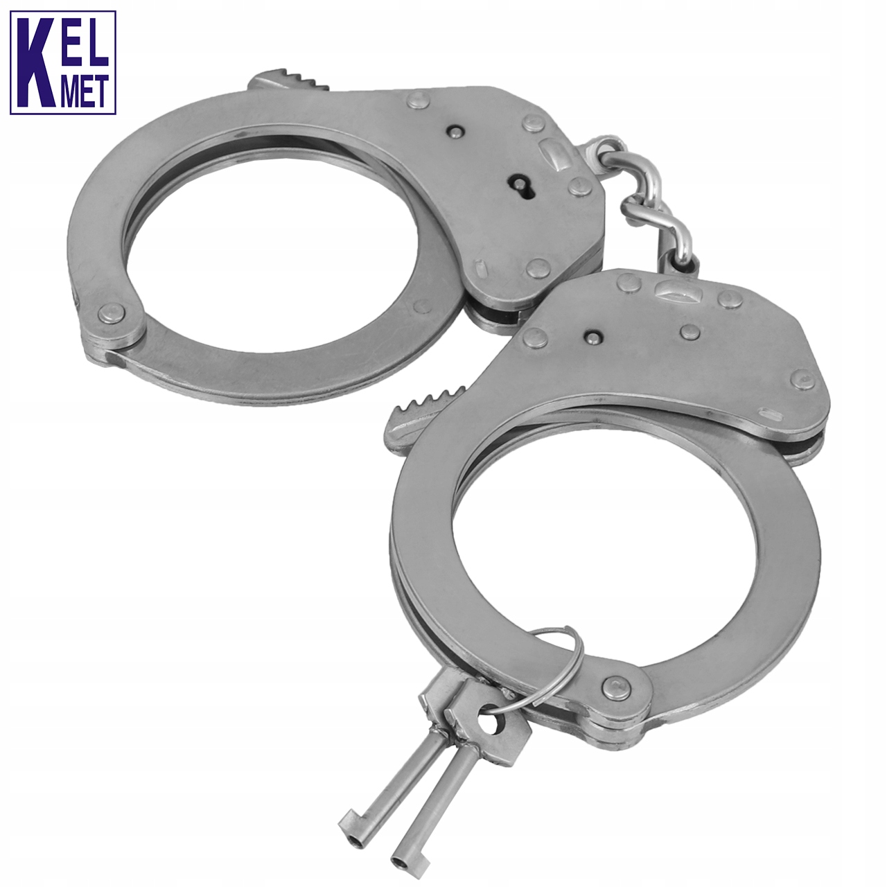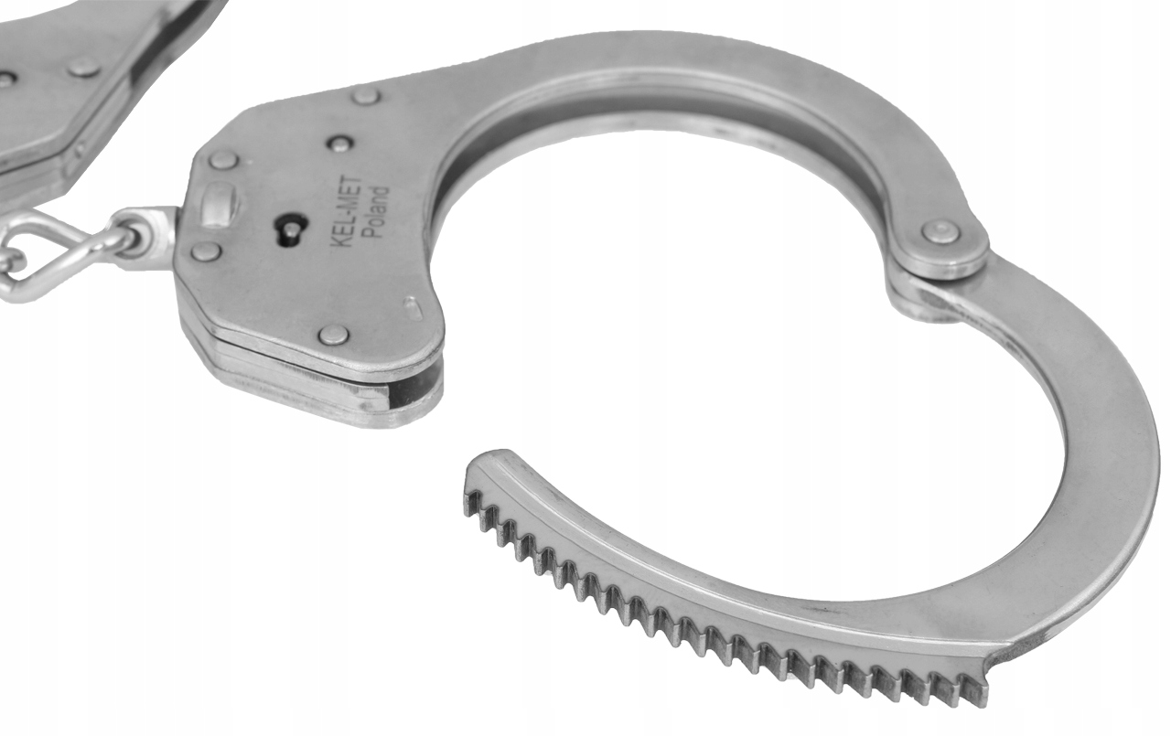 Надежные полицейские наручники польской марки Kel-Met, полностью изготовленные из нержавеющей стали в соответствии со стандартом PN-EN 10088-1.