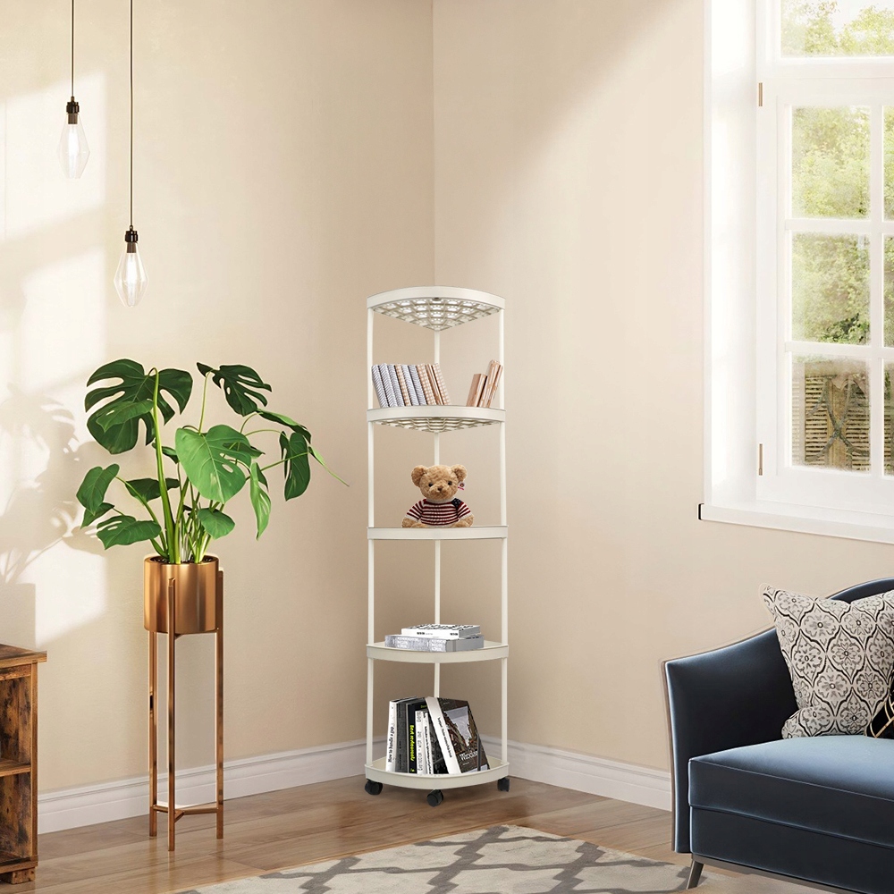 🎁🎁🎁 [Структура сохраняет место] Этот диапазон диапазона ряда диапазона ряда диапазона зацветательного места для хранения. Эта 5-уровневая полка идеально подходит для углов и небольших помещений, идеально подходит для небольших квартир и домов. Вентиляторные полки и 90-этажный задний угол позволяют вам свободно установить полку или идеально соответствовать стене. Он занимает мало места, предоставляя много места для хранения и отображения.