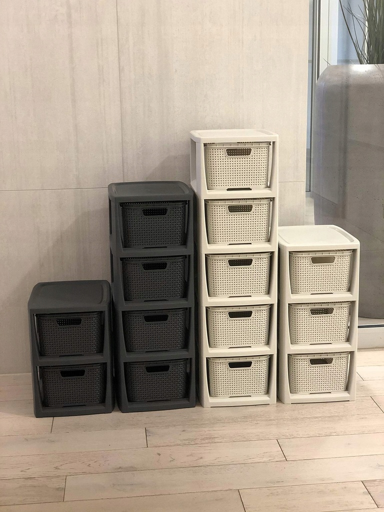 Серая полка с выдвижными ящиками не только чрезвычайно практична, но и красиво выглядит. Бренд Branq доказывает, что даже изделия из пластика могут быть прочными, эстетичными и функциональными. Вот такая полка!