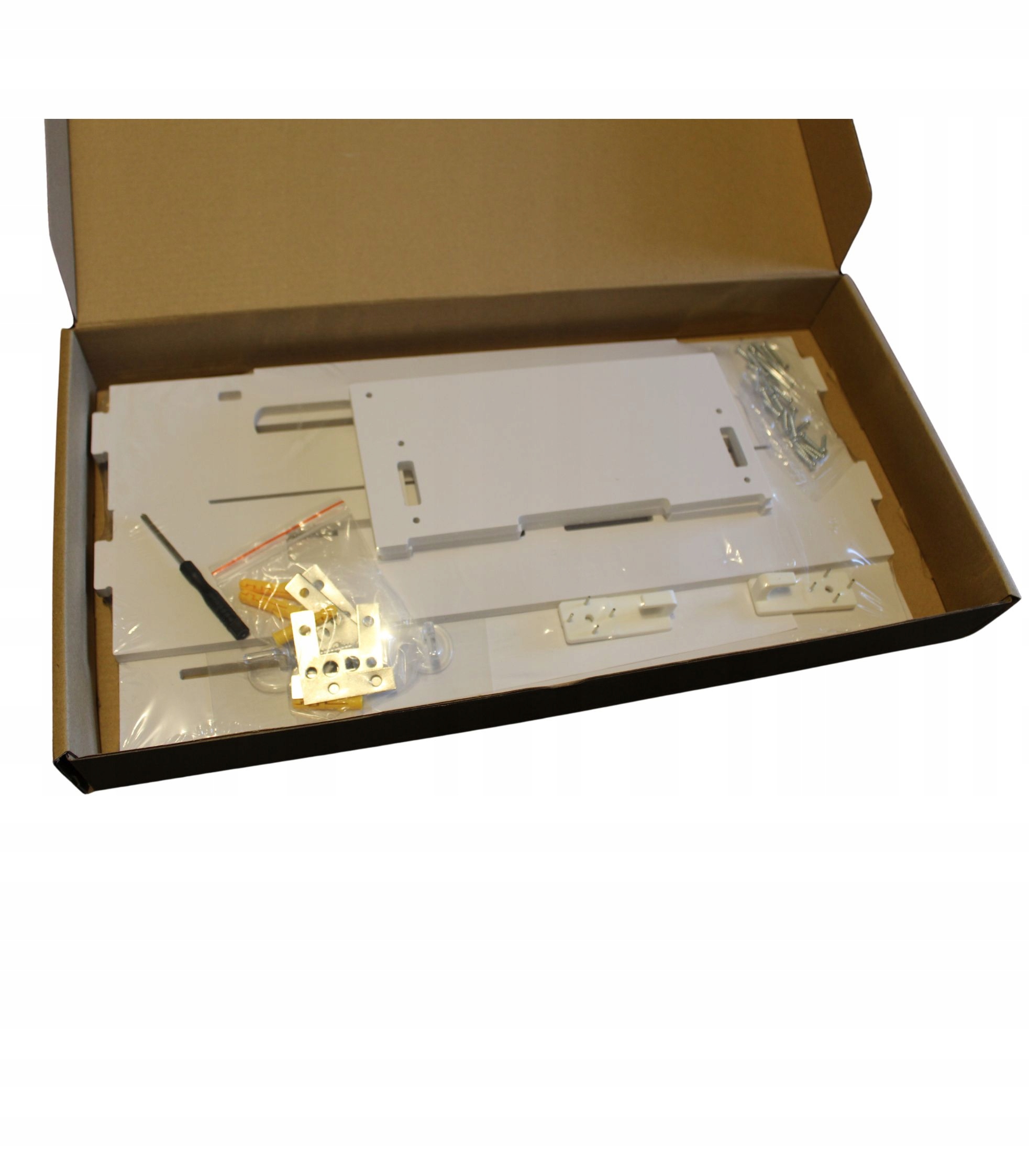 В комплект входят аксессуары , в том числе небольшая отвертка и набор из 4 угловых кронштейнов, которые максимально стабилизируют полку.
