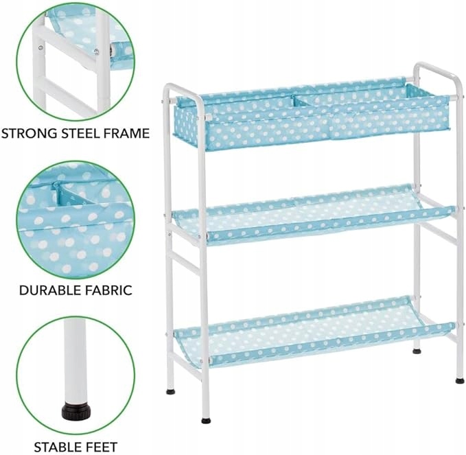 - ПРОЧНЫЙ МАТЕРИАЛ: Детская полка изготовлена из прочного металла с антикоррозийным покрытием. Полки полки изготовлены из синтетического волокна. Его можно чистить влажной тряпкой.