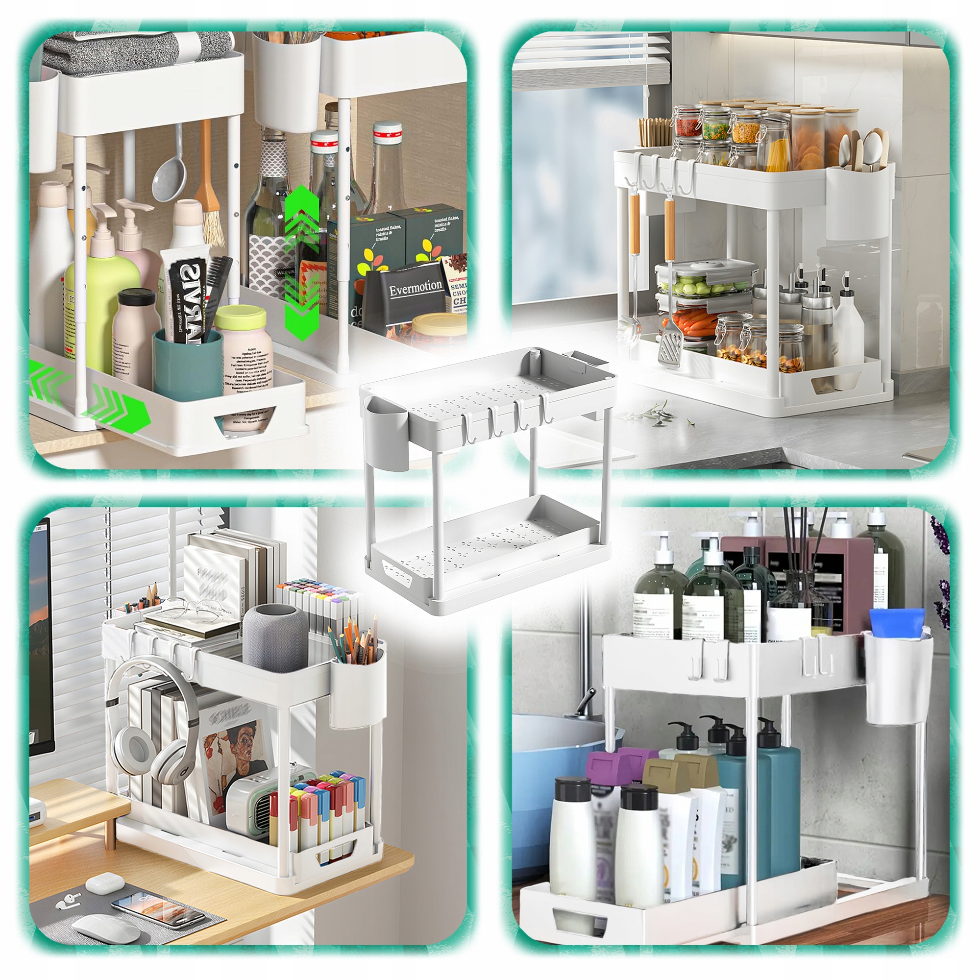 ✨ Двухуровневый органайзер под раковину с выдвижной полкой — практичное и стильное решение, которое помогает поддерживать порядок на кухне, в ванной или прачечной.