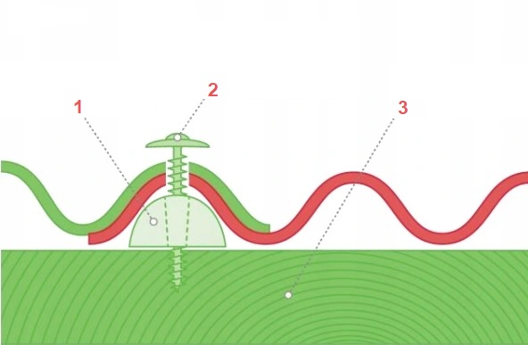 Крыша: на каждой 2 или 3 волне - в гребне волны - 12 шт./м2