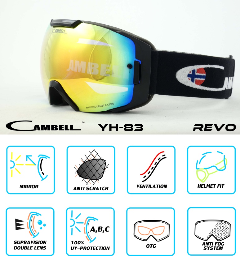 Защитные очки CAMBELL для катания на лыжах и сноуборде с линзами Revo