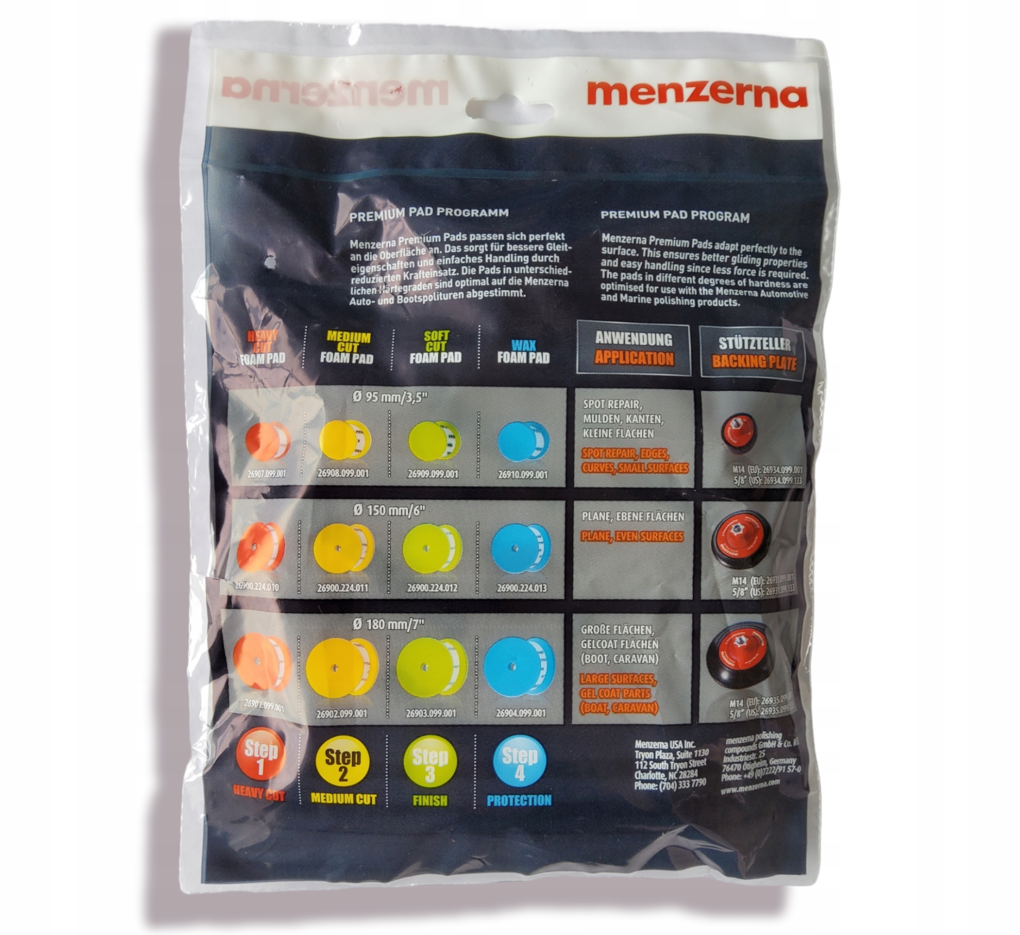 Удаляет царапины и следы после шлифовки. и дефектов поверхности в сочетании с полировальными пастами Menzerna Heavy Cut.