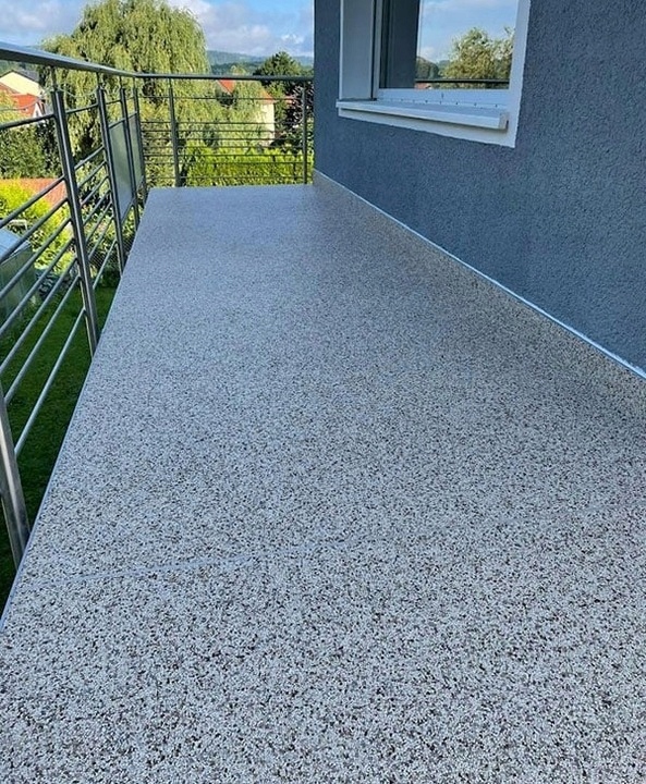 Двухкомпонентный набор смол с высокой устойчивостью к ультрафиолетовому излучению для устройства полов, террас и балконов для наружных и внутренних работ.