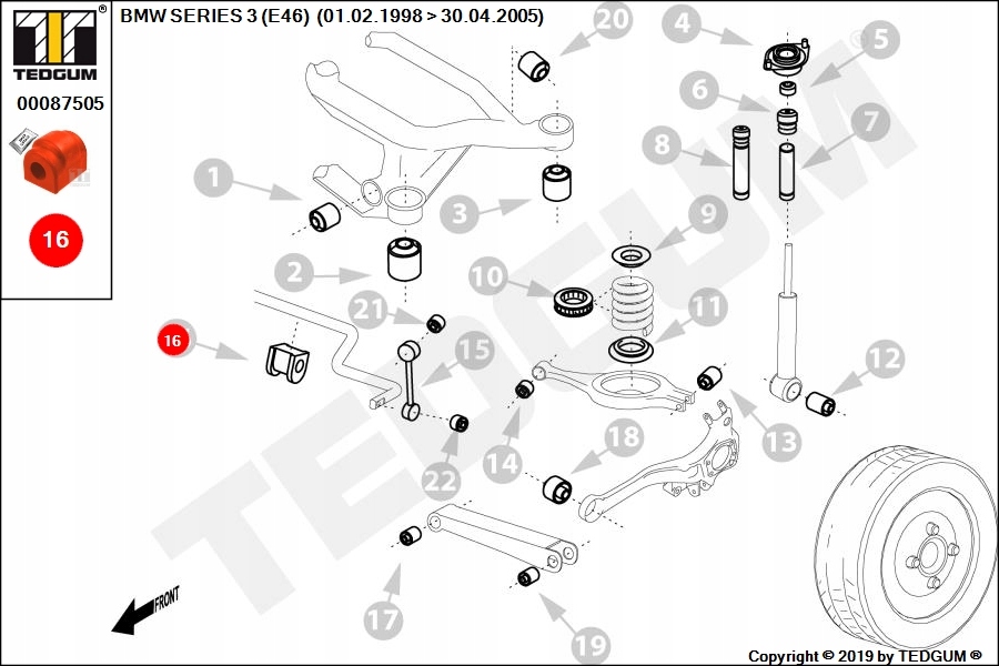 BMW SERIES 3 (E46) ПОЛИУРЕТАН - ВТУЛКА ЗАДНЕГО СТАБИЛИЗАТОРА (ВНУТРЕННЯЯ)