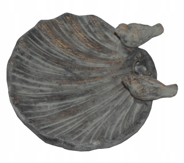 Поилка из пластика на цементной основе в оттенках потертого серого с небольшим количеством зеленого и золотого