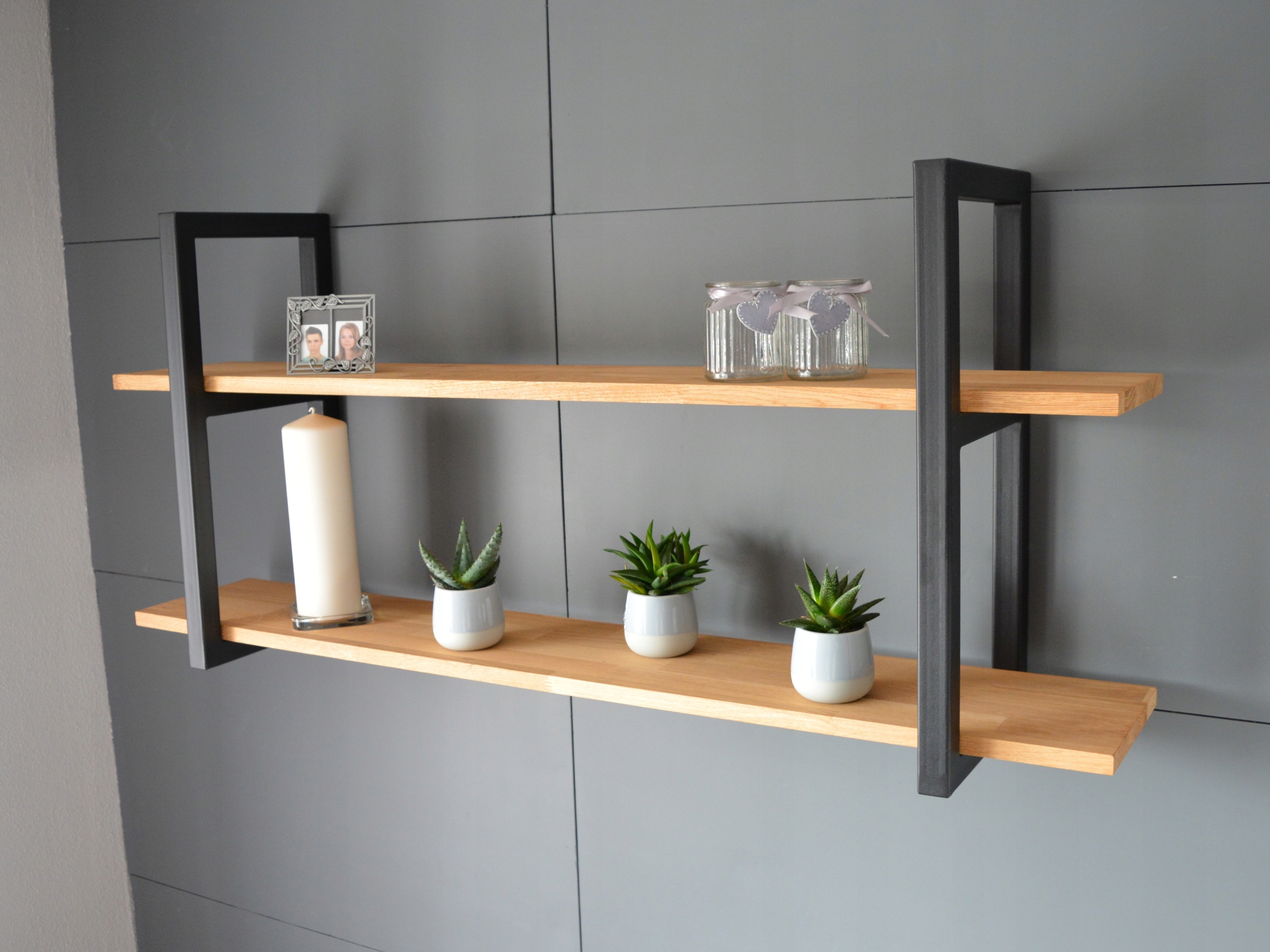 Ручная работа Полка из стали с порошковым покрытием, устойчивой к царапинам и ударам, и дуба защищенное специальное масло высочайшего качества на основе натуральных ингредиентов.