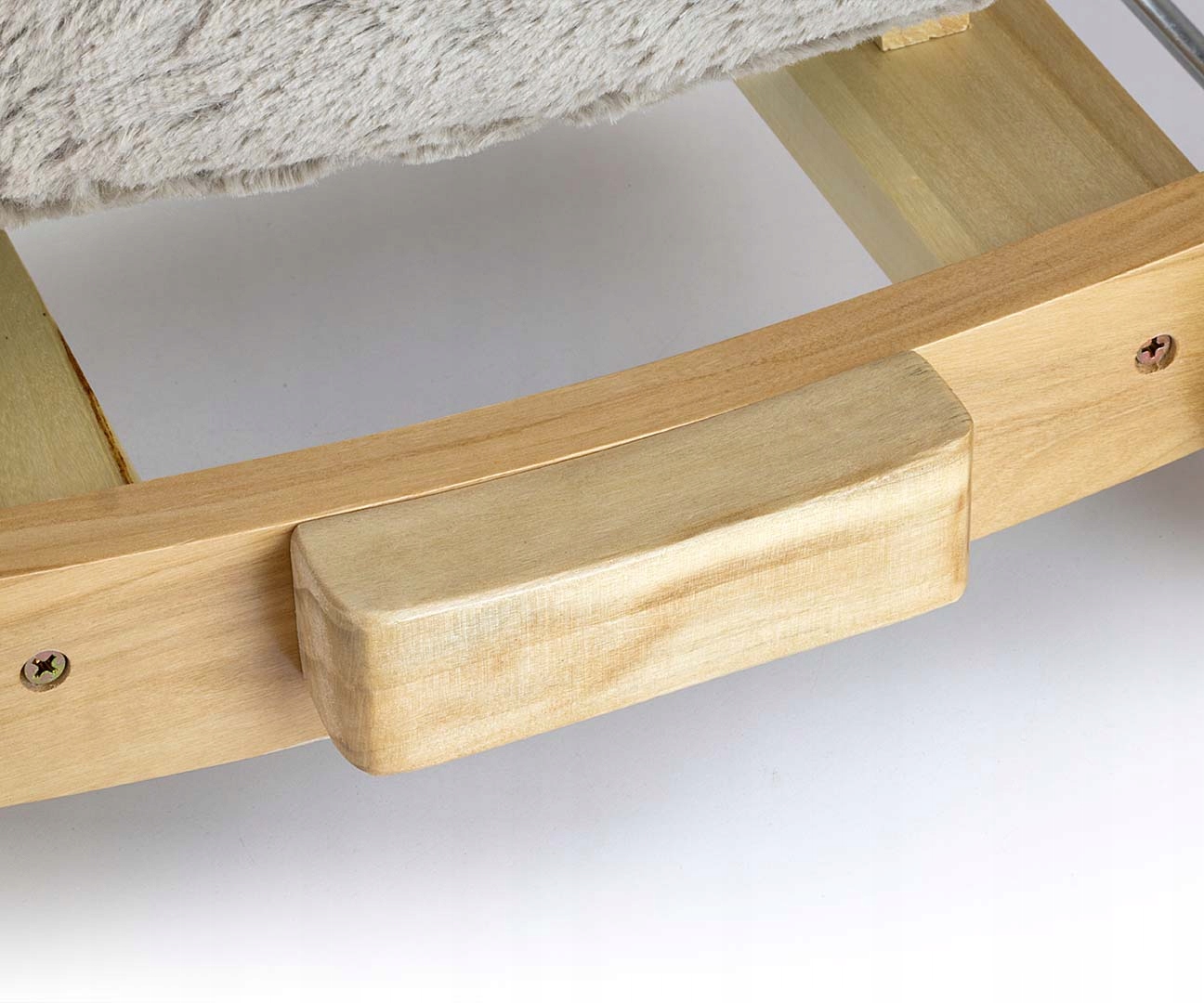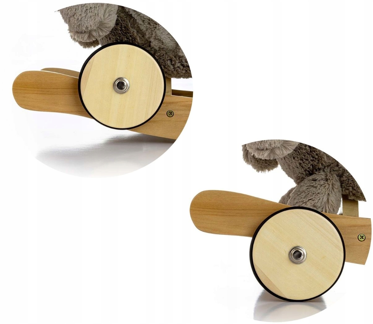 Качалка оснащена деревянными опорами с подставками для ног и ручками, которые помогут сохранять равновесие во время игры, а также комплект складных колес с нескользящим чехлом, благодаря которым за несколько секунд можно превратить его в чудесный плюшевый автомобиль.