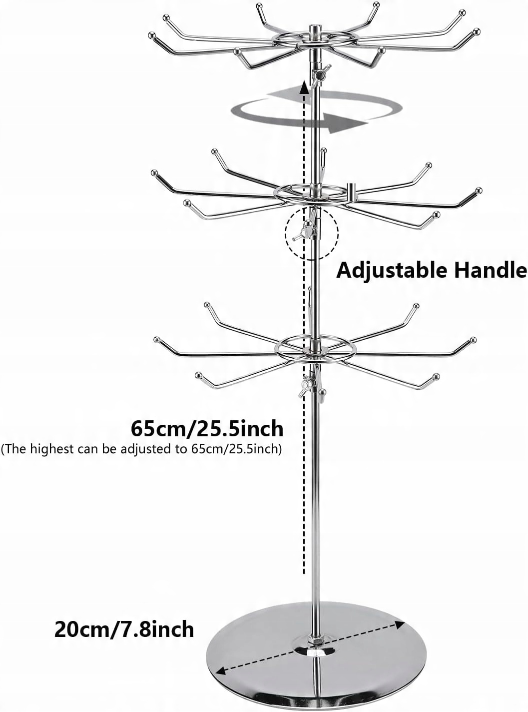 POLMART РЕГУЛЬОВАНА ПІДСТАВКА ДЛЯ ЮВЕЛІЙНИХ ВИРОБІВ ОБРАТНІ ІГРАШКИ 3 РІВНІ ХРОМОВАНА
